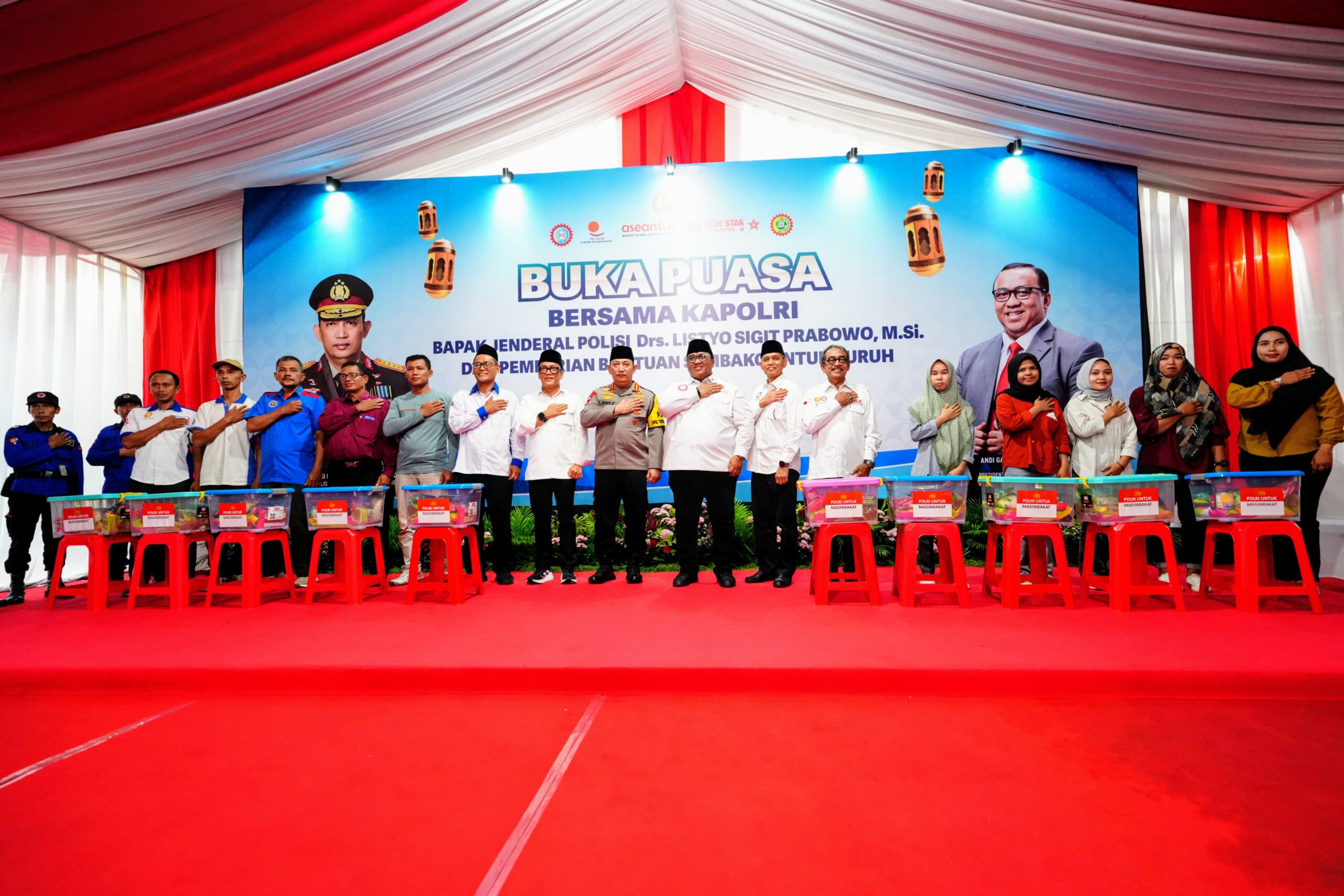 Jakarta. Kapolri Jenderal Polisi Drs. Listyo Sigit Prabowo menghadiri kegiatan buka puasa bersama elemen buruh di PT Cahaya Perdana Plastic (CPP) Lion Star di Jakarta Utara (Jakut). Dalam acara tersebut, Jenderal Sigit juga menyerahkan paket sembako.
