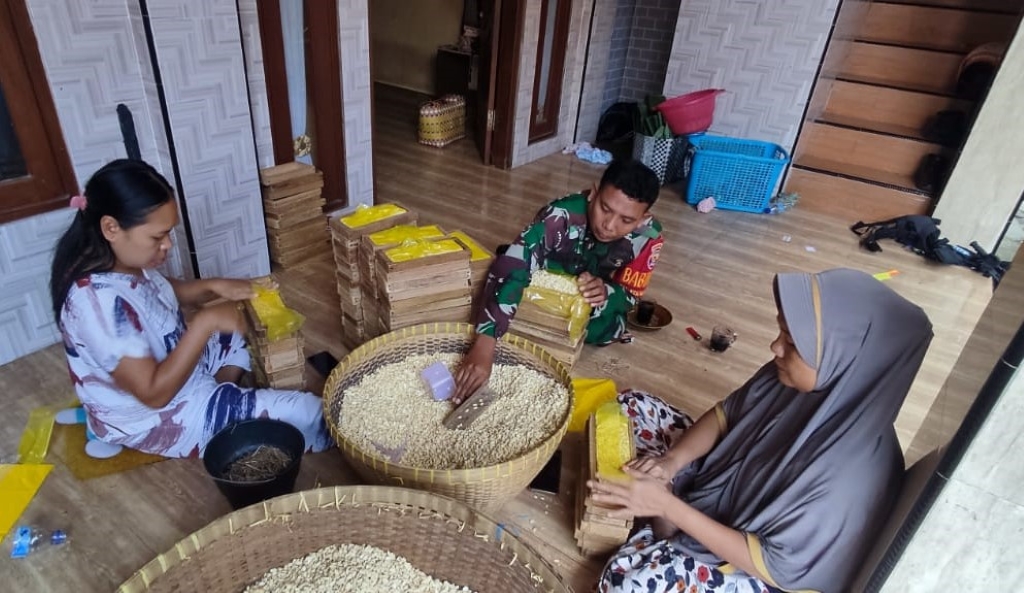 Pada kunjungan tersebut, Babinsa berbincang hangat dengan Suparmin, seorang pelaku usaha mikro yang telah puluhan tahun memproduksi tempe secara tradisional untuk memenuhi kebutuhan pasar lokal.