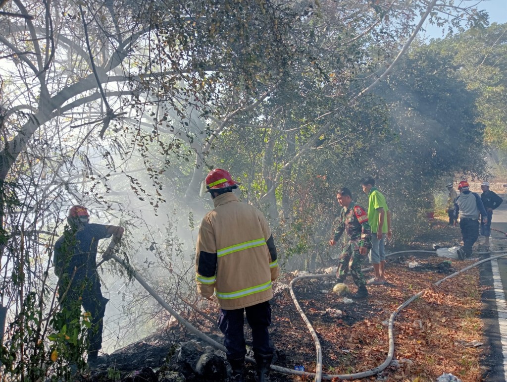 Tak lama berselang, Damkar Pemenang bersama Babinsa dan warga bergotong royong melakukan pemadaman. Dalam waktu sekitar satu jam, api berhasil dipadamkan dan lokasi kembali aman.