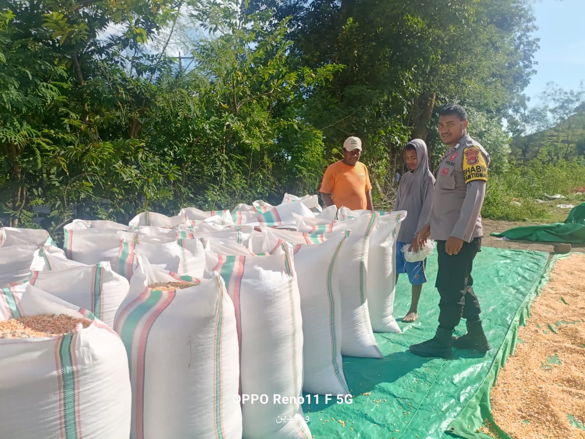Bhabinkamtibmas Desa Adu Dampingi Warga Jemur Jagung, Dukung Ketahanan Pangan Nasional