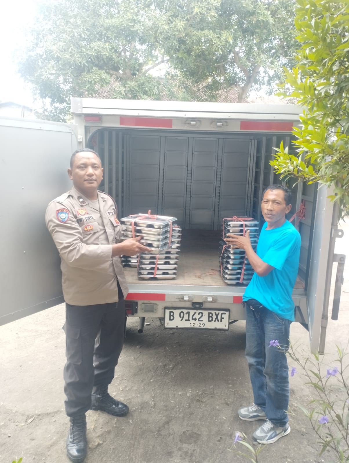 Aipda Dwi Surya Gerhana bertugas memastikan kelancaran dan ketepatan penyaluran bantuan makanan bergizi yang bersumber dari dapur MBG Yayasan Rahmatul Ummah UD. Iye Gati.