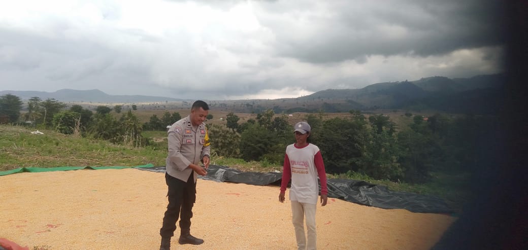 Dalam rangka mendukung Program Ketahanan Pangan Nasional Menuju Indonesia Emas 2024, Bhabinkamtibmas Desa Saneo Polsek Woja, Aipda Dahlan, SH, melaksanakan pemantauan kegiatan panen jagung milik warga binaan, Sdr. Jaidin, pada Kamis, 17 April 2025 pukul 13.10 Wita di Dusun Saneo 1, Desa Saneo, Kecamatan Woja, Kabupaten Dompu.