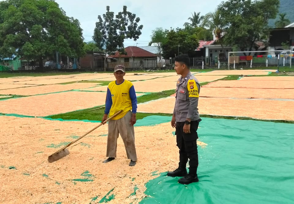 Bhabinkamtibmas Desa Sawe Pantau Proses Penjemuran Jagung sebagai Dukungan Ketahanan Pangan Nasional