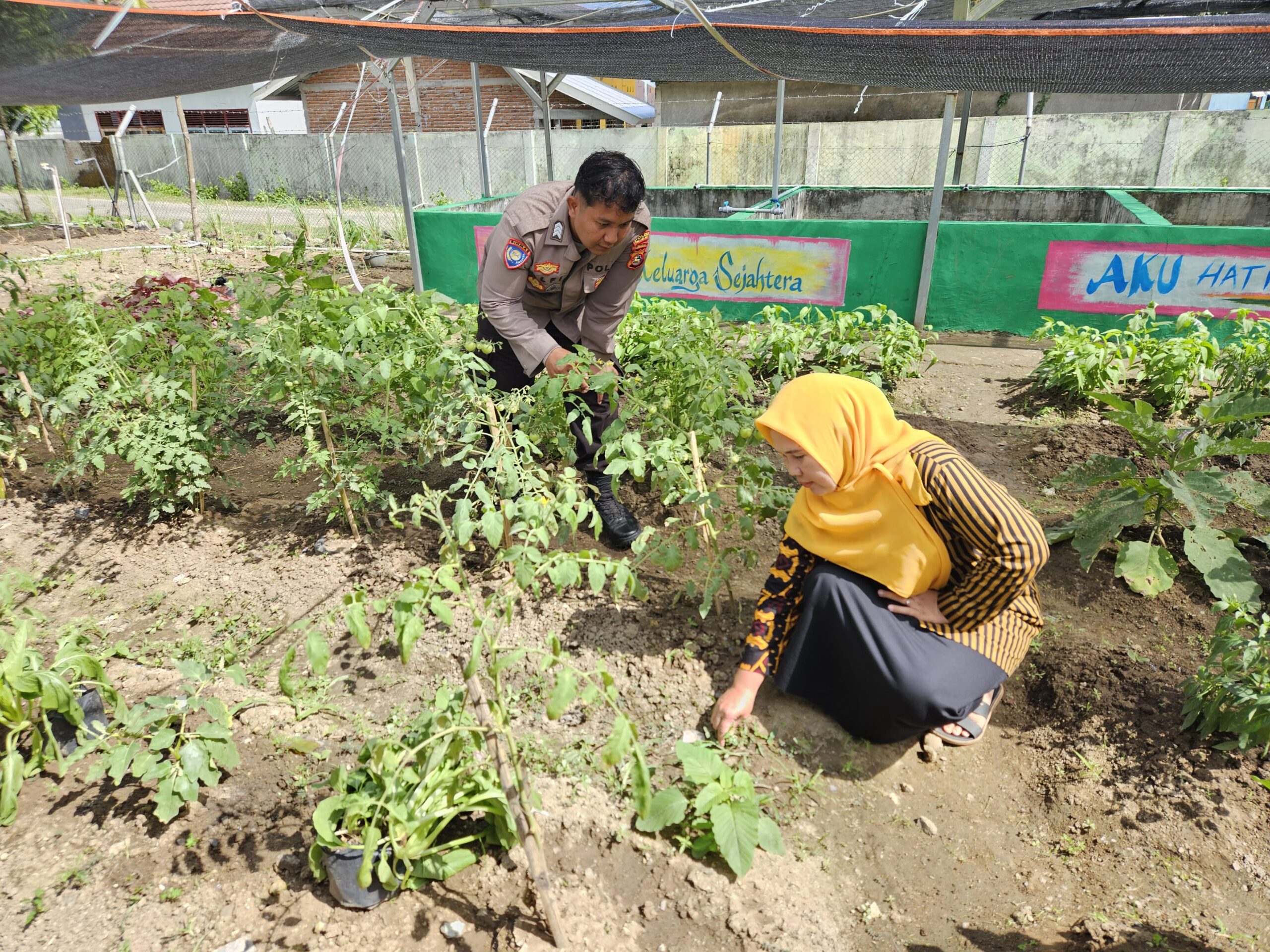 Kegiatan yang menyasar langsung warga pengelola Pekarangan Pangan Bergizi ini bertujuan untuk memberikan dukungan dan motivasi kepada masyarakat agar terus memanfaatkan lahan pekarangan rumah untuk menanam berbagai jenis sayur dan buah-buahan. Dalam kesempatan tersebut, Bhabinkamtibmas melakukan pengecekan langsung terhadap lahan milik salah satu warga binaan yang telah menanam berbagai tanaman seperti terong, cabai, dan melon.