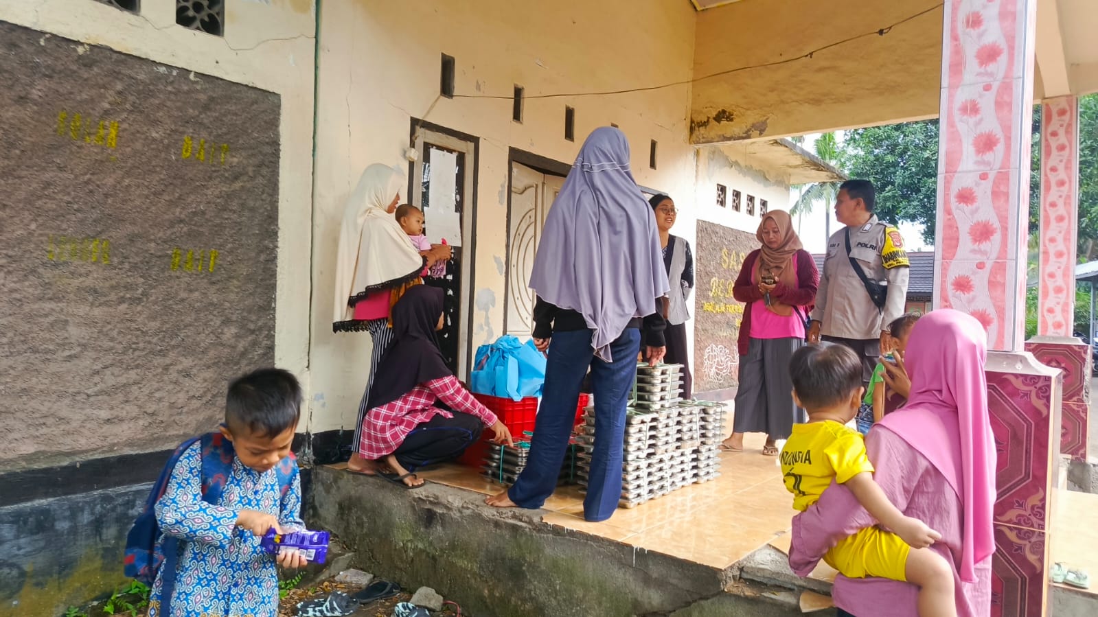 Pendistribusian makanan bergizi ini merupakan salah satu program pemerintah yang disalurkan secara berkala untuk mendukung kesehatan dan tumbuh kembang generasi muda. Dalam kegiatan yang berlangsung mulai pukul 10.30 WITA, AIPDA Adi Sucianto aktif berinteraksi dengan masyarakat penerima manfaat.