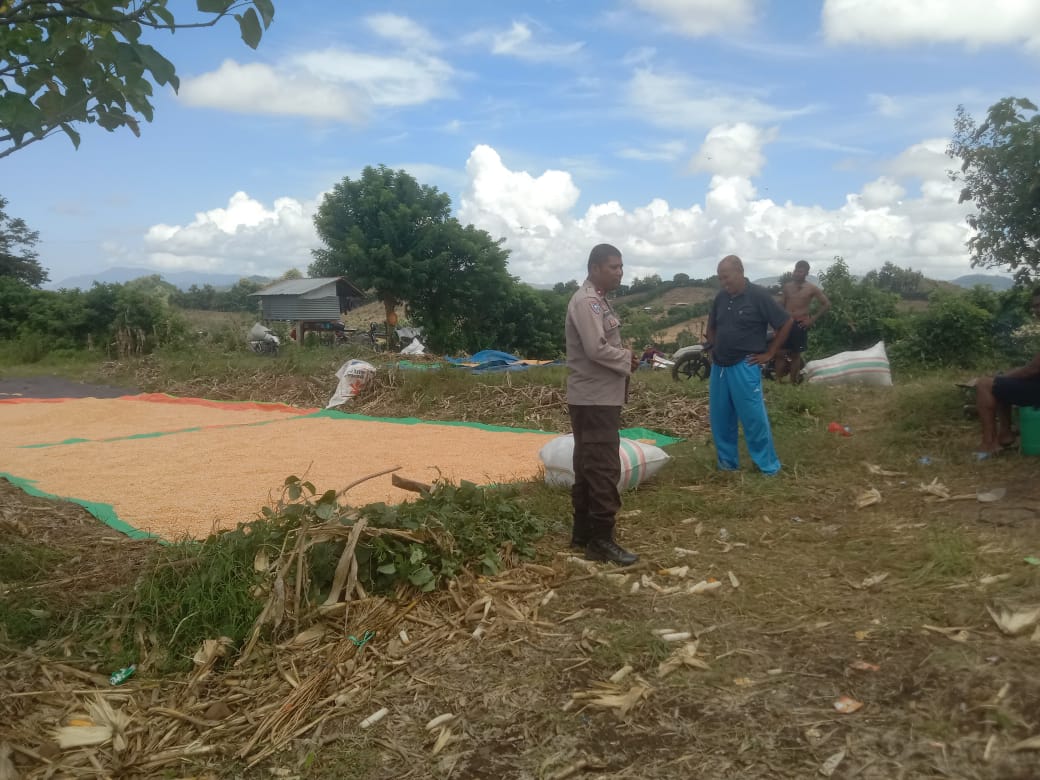 Sebagai bentuk dukungan terhadap Program Ketahanan Pangan Nasional Menuju Indonesia Emas 2045, Bhabinkamtibmas Kelurahan Simpasai, Aipda Haerudin, melaksanakan kegiatan pemantauan panen jagung di Lingkungan Larema, Kelurahan Simpasai, Kecamatan Woja, pada Selasa (15/4/2025) pukul 12.00 Wita.