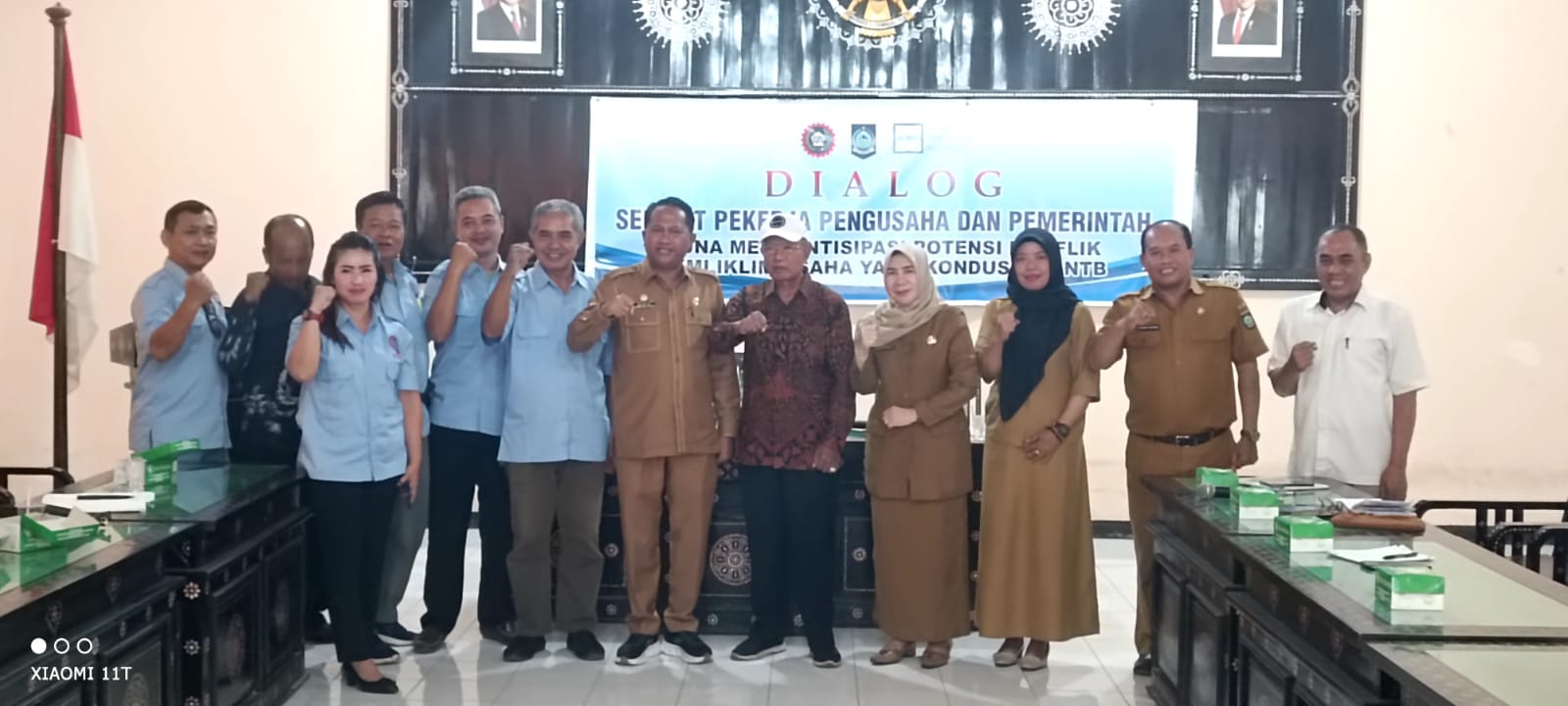 Bertempat di Ruang Rapat Utama Disnakertrans Provinsi NTB Jln. Majapahit No. 29 Kota Mataram, dilaksanakan Kegiatan Dialog Serikat Pekerja yang Di inisasi oleh Konfederasi Serikat Pekerja Seluruh Indonesia (KSPSI) NTB Dan Asosiasi Pengusaha Indonesia APINDO NTB bersama pemerintah, guna mengantisipasi Potensi Konflik demi terciptanya Iklim Usaha yang Kondusif di NTB.