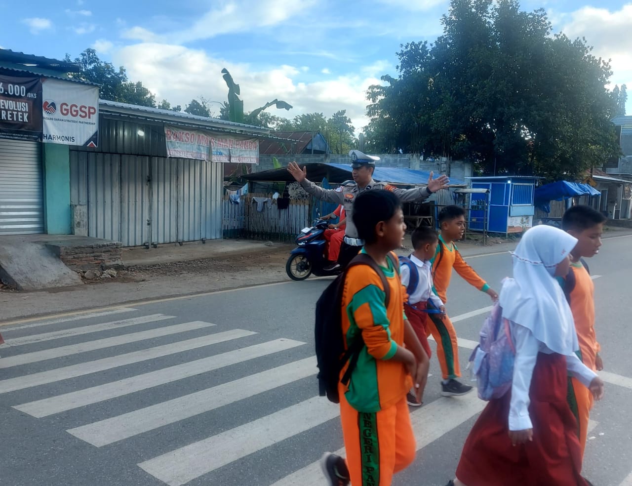 Dalam kegiatan tersebut, Sat Lantas Polres Bima menyebarkan sejumlah personilnya di titik-titik yang rawan kemacetan dan yang ramai diseberangi pejalan kaki, salah satunya di depan SDN Panda, Kecamatan Palibelo.
