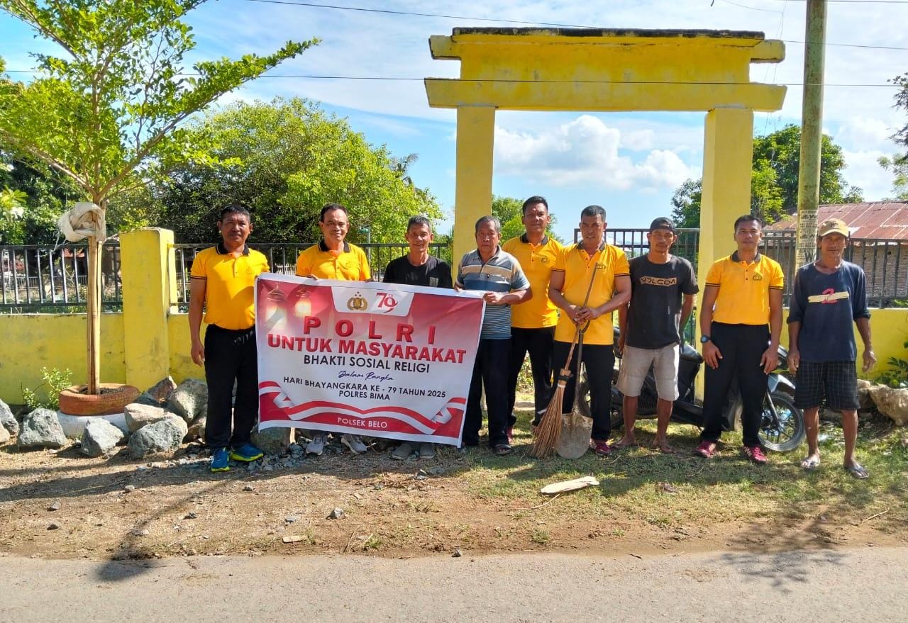 Sabtu 14 Juni 2025 bertempat di Pemakaman Umum TPU Desa Runggu Kecamatan Belo Kabupaten Bima Polsek Belo Polres Bima Polda NTB melaksanakan gotong royong.