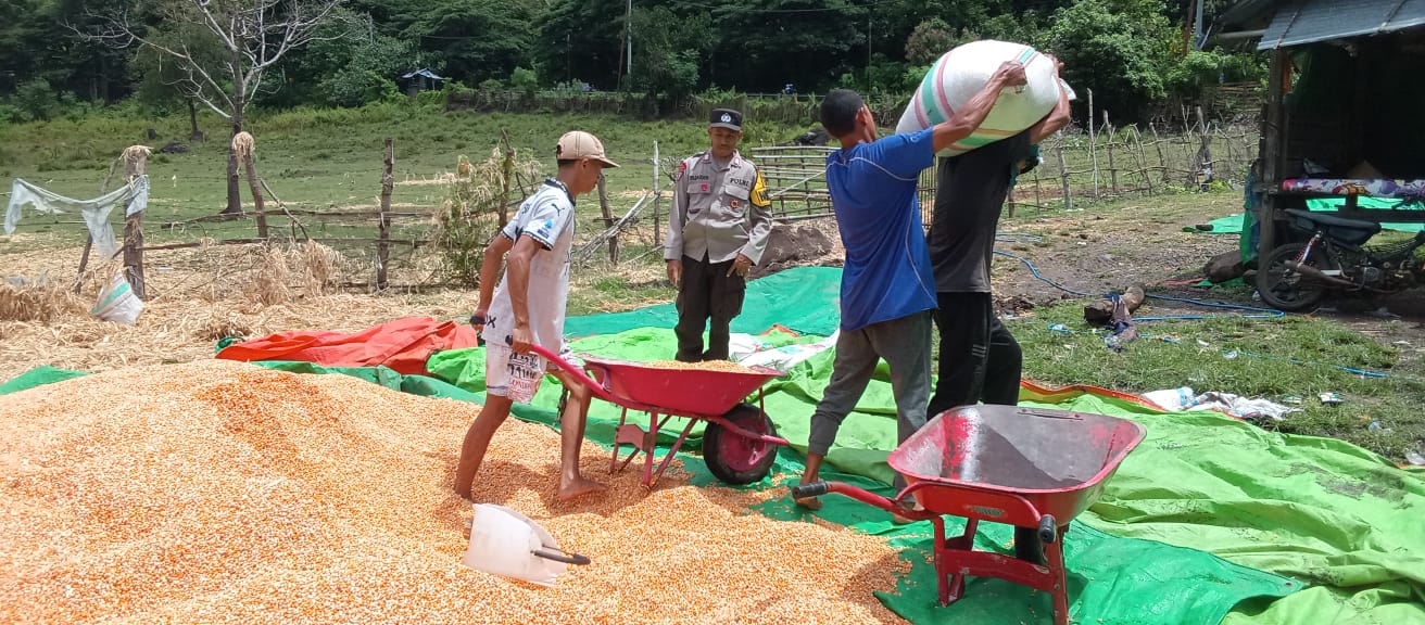 Dukung Ketahanan Pangan, Bhabinkamtibmas Madaprama Pantau Panen Jagung di Lahan 7.000m²