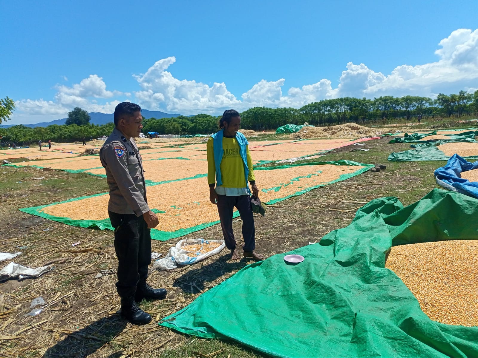 Dukung Ketahanan Pangan Nasional, Bhabinkamtibmas Desa Marada Pantau Langsung Proses Penjemuran Jagung Milik Warga