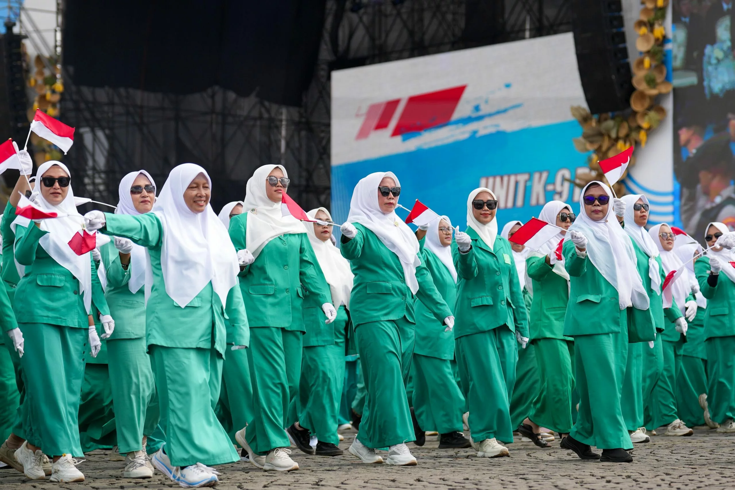 Jakarta. Fatayat Nahdlatul Ulama (NU) turut serta dalam defile HUT Bhayangkara ke-79 di Lapangan Silang Monas, Jakarta Pusat, pada 1 Juli 2025. Sebanyak 172 personel Fatayat NU berbaris dalam batalyon 26.