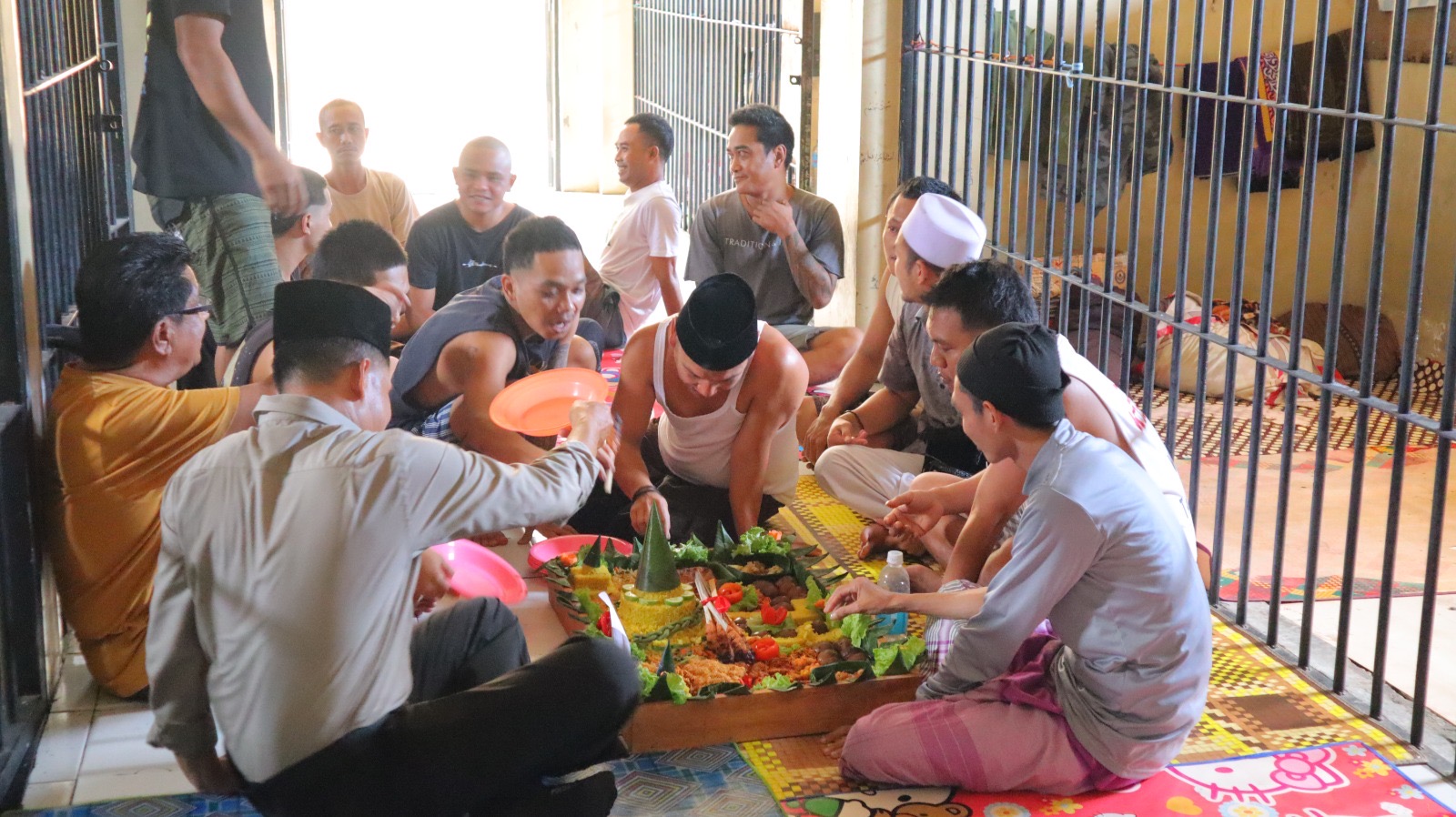 Kapolres mengunjungi ruang tahanan dan memberikan tumpeng kepada tahanan. Dalam kesempatan ini, Kapolres juga menyampaikan pesan tentang pentingnya introspeksi diri atas perbuatan yang telah di lakukan dan mau berubah pola tindak kedepan untuk lebih baik dan bermanfaat sehingga dengan perubahan pola tindak maka rekan – rekan semua siap untuk kembali ke masyarakat dengan kehidupan yang lebih baik.