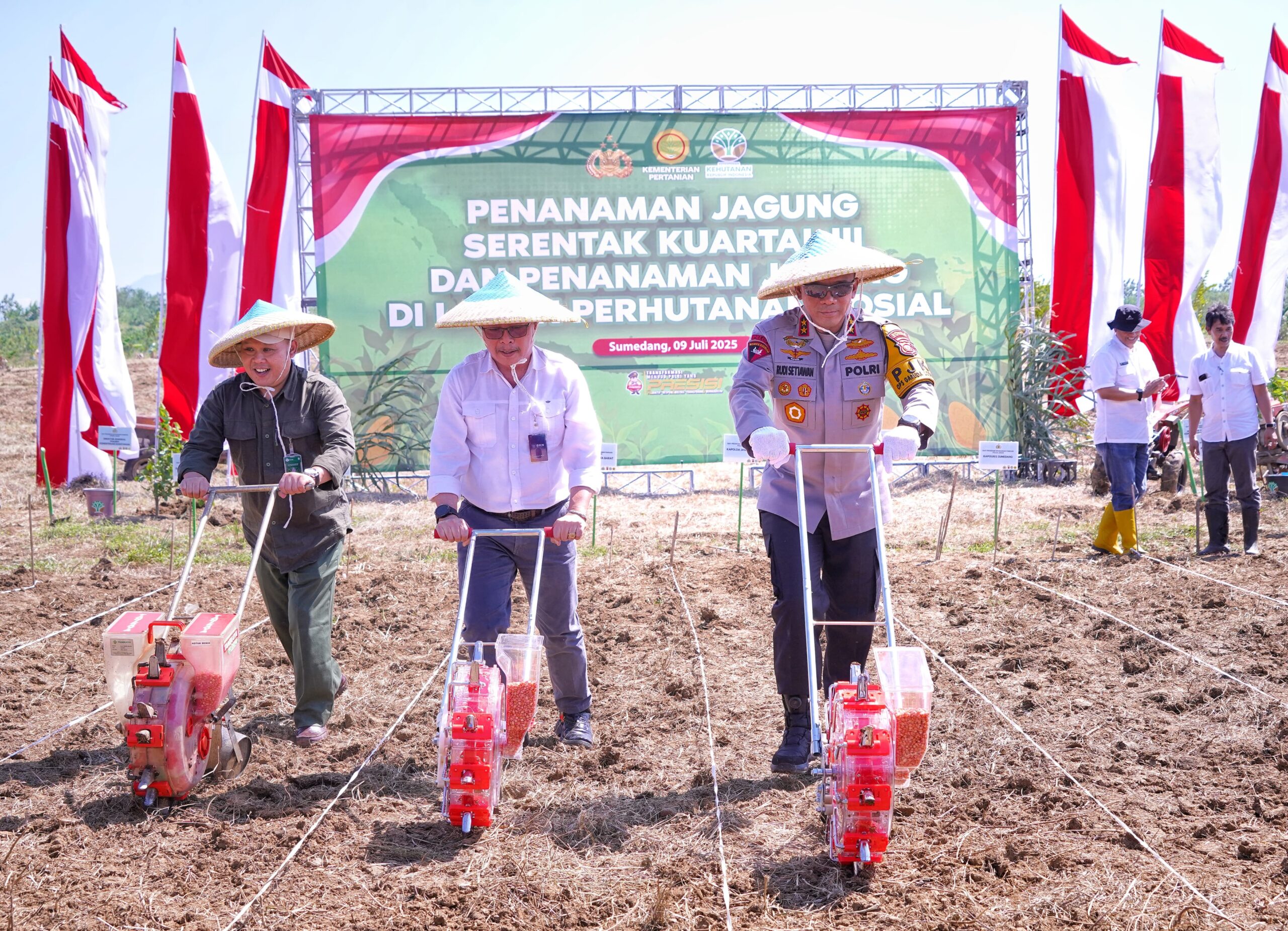 Jakarta. Kapolda Jawa Barat Irjen Pol. Rudi Setiawan memimpin kegiatan penanaman jagung serentak kuartal tiga, yang dilaksanakan di Petak 72, Blok Bandrek, Desa Keboncau, Kecamatan Ujungjaya, Kabupaten Sumedang, Rabu (9/7/2025).