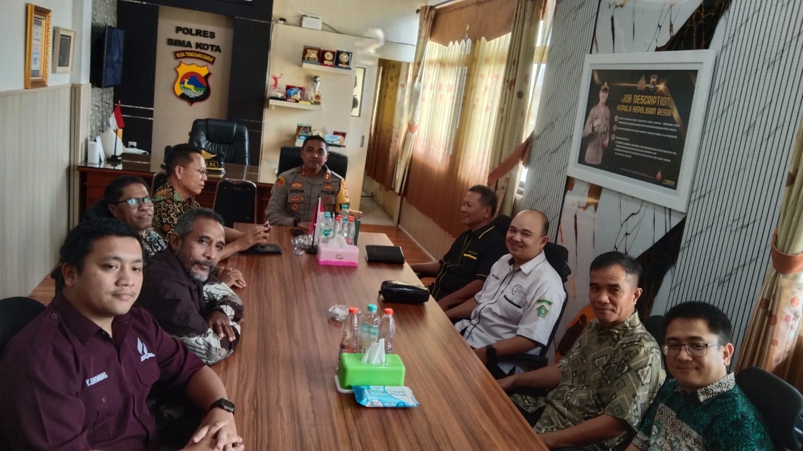 Kota Bima, NTB (12/2) – Kapolres Bima Kota AKBP Didik Putra Kuncoro, S.I.K., M.Si., menggelar silaturahmi dengan Ketua Forum Komunikasi Gereja-gereja Kristen (FKGK) Kota Bima, para pendeta, serta anggota FKGK Kota Bima. Pertemuan ini berlangsung pada Rabu, 12 Februari 2025, pukul 13.15 WITA, bertempat di Ruangan Kapolres Bima Kota.