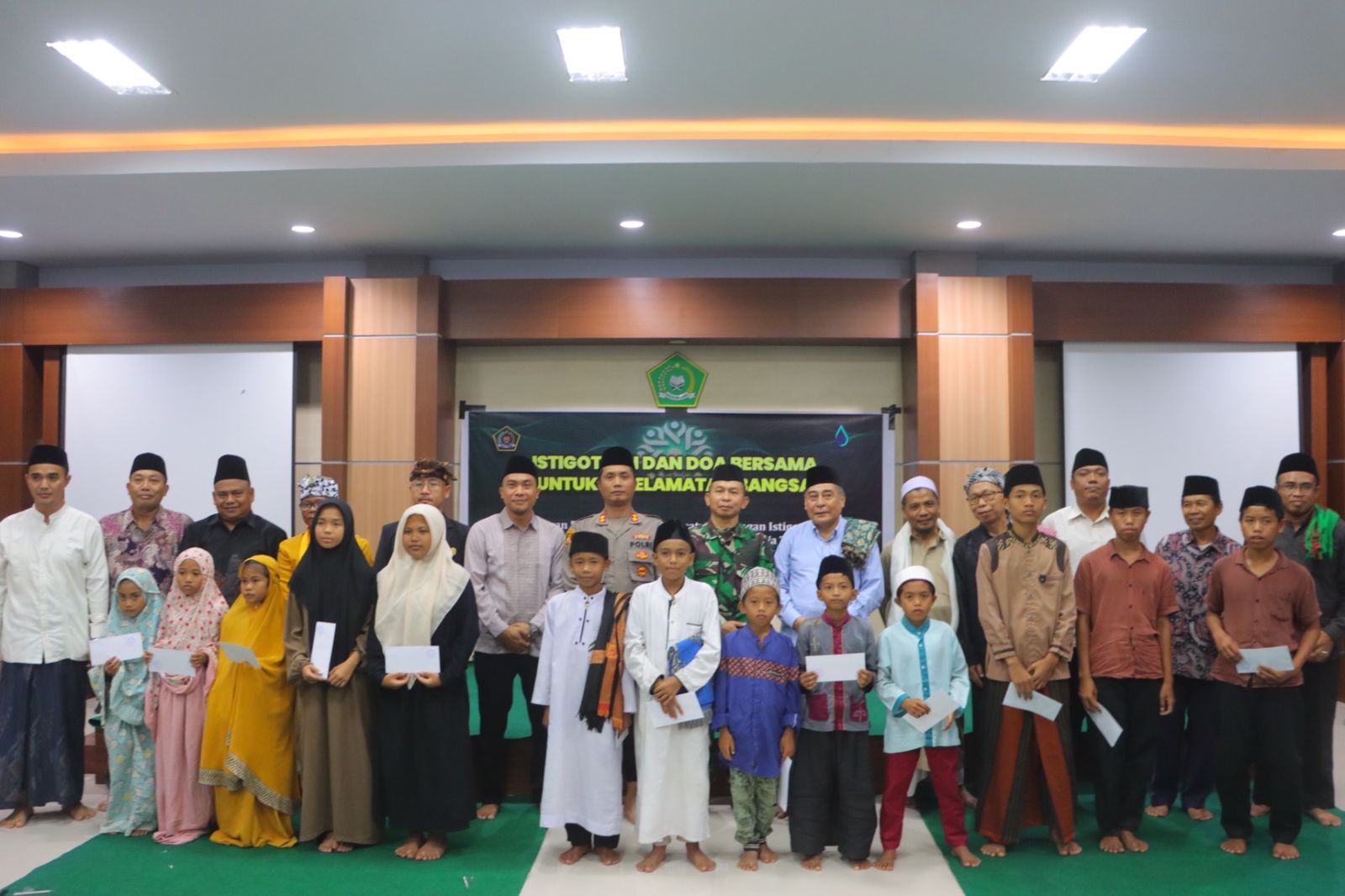 Kegiatan diakhiri dengan penyerahan santunan kepada anak yatim sebagai wujud kepedulian sosial.