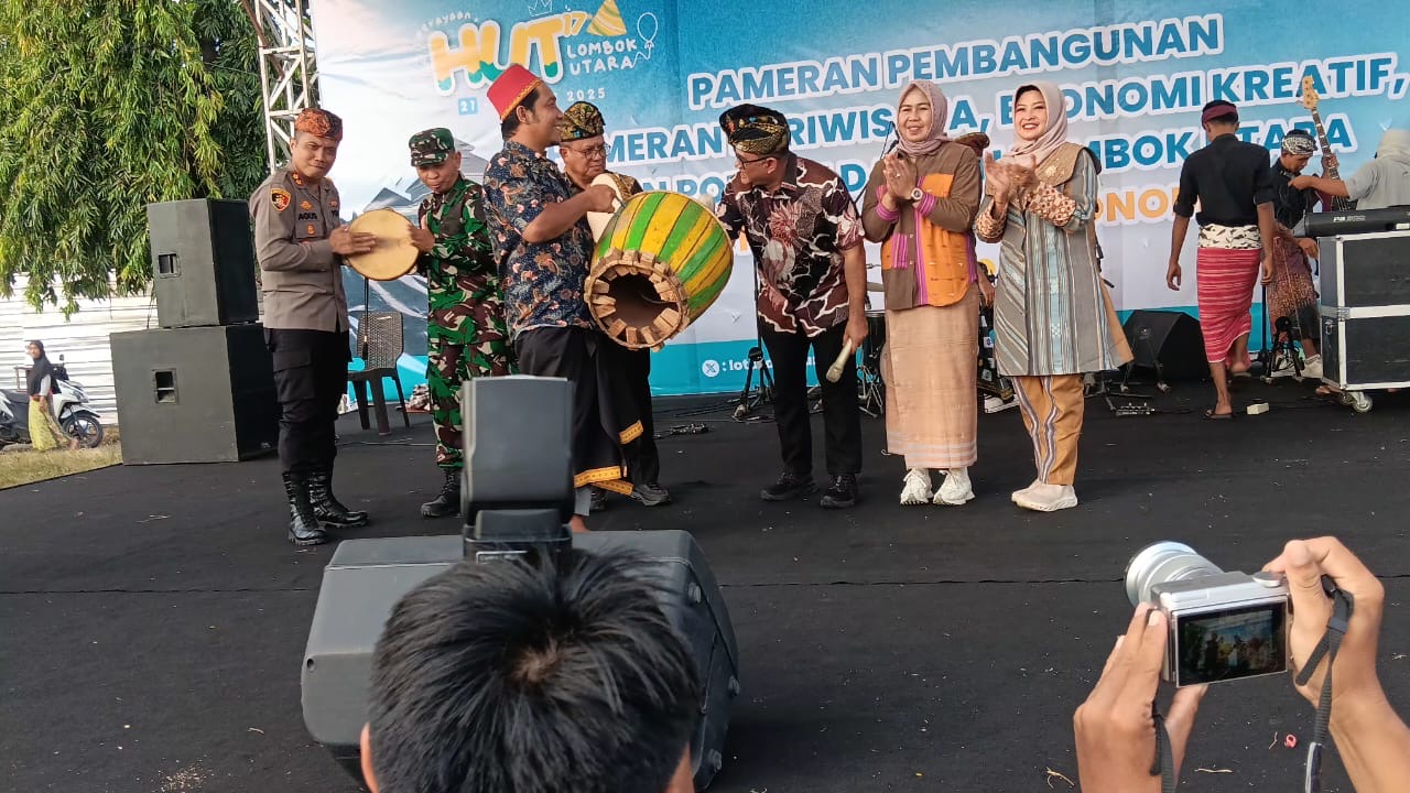 Dalam kesempatan ini, Wakil Bupati KLU Kusmalahadi Syamsuri, S.T.,M.T. membuka secara resmi acara pameran dengan memukul beduk, didampingi oleh Kapolres Lombok Utara, Pabung Dandim 1606/Mataram, Kadis Pariwisata, dan Ketua Panitia HUT KLU ke-17.