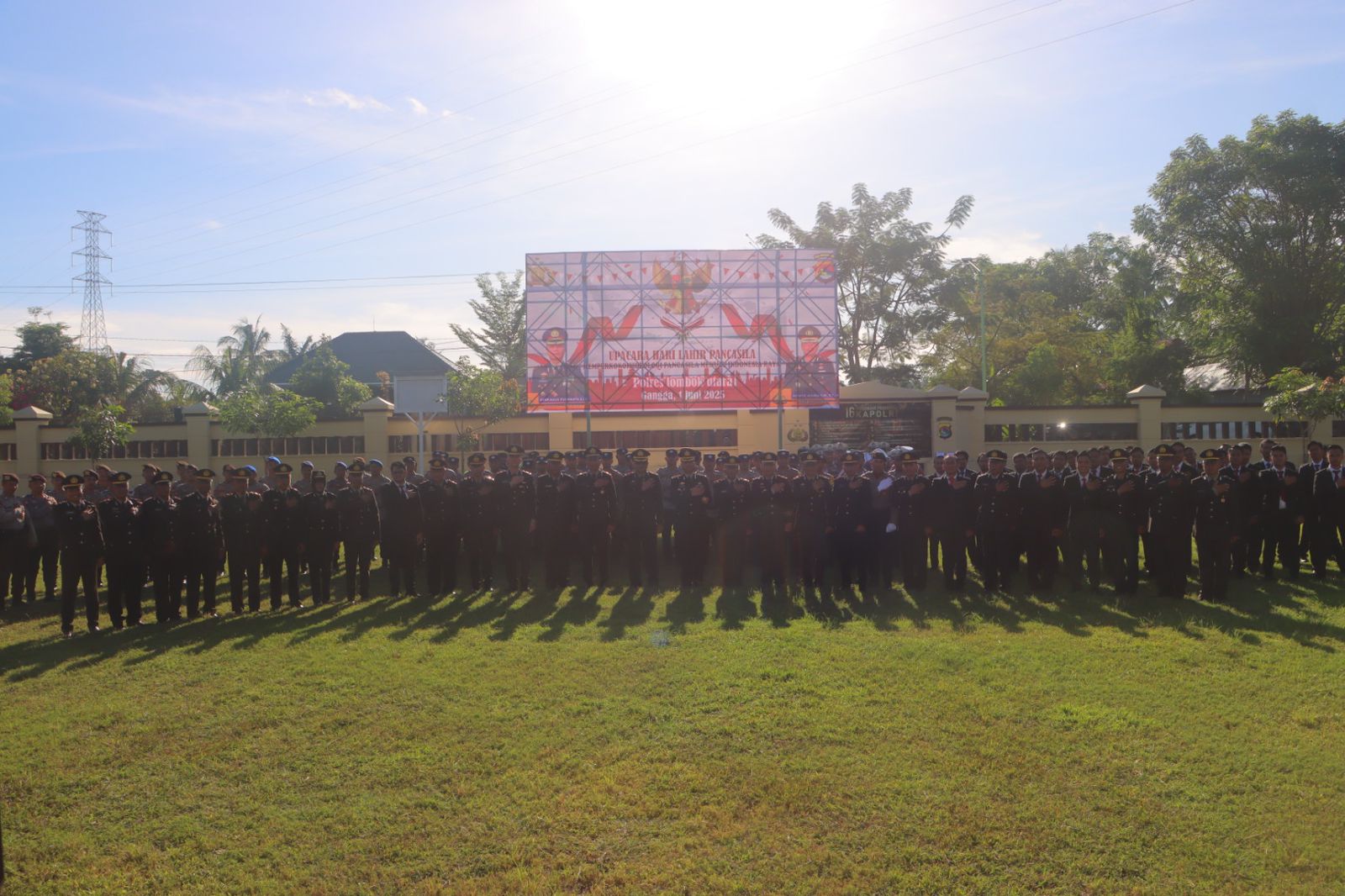Dalam amanatnya, Kapolres membacakan pidato resmi Kepala Badan Pembinaan Ideologi Pancasila Republik Indonesia, yang menekankan pentingnya momentum Hari Lahir Pancasila sebagai pengingat dan penguat komitmen seluruh elemen bangsa terhadap nilai-nilai dasar yang menjadi fondasi Negara Kesatuan Republik Indonesia (NKRI).