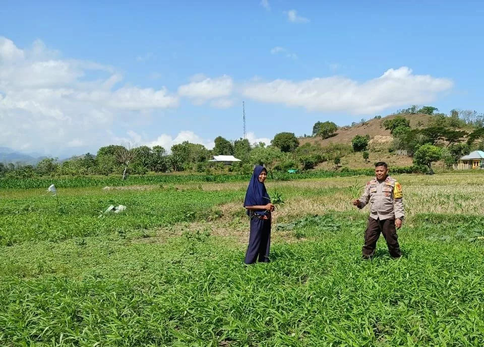 Bhabinkamtibmas Polsek Woha Polres Bima Polda NTB Aipda M.Saleh sebagai Penggerak Ketahanan Pangan di Desa Binaannya menyambangi kebun sayur milik warga binaan.