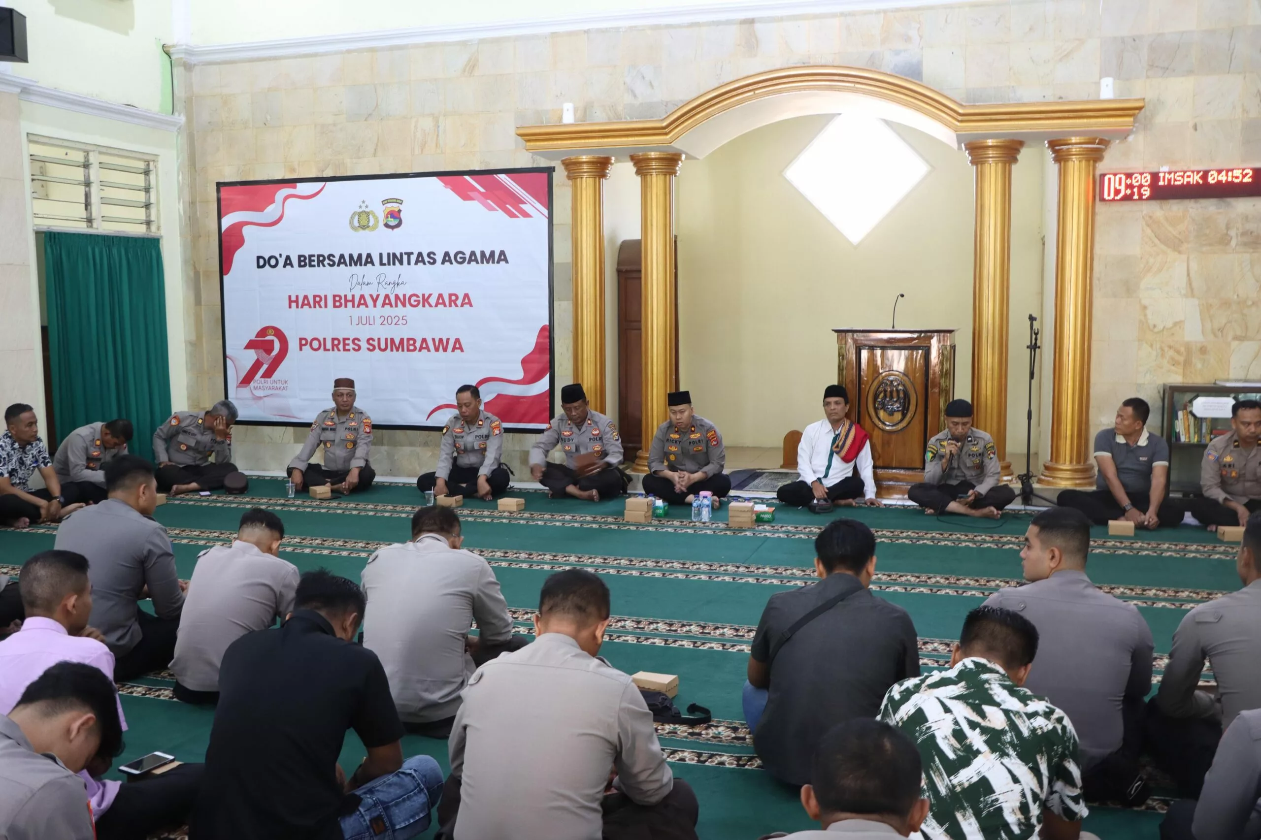 Sumbawa Besar, NTB — Menjelang peringatan Hari Bhayangkara ke-79, Polres Sumbawa menunjukkan komitmennya terhadap kerukunan umat beragama dengan menggelar doa lintas agama pada Kamis, 26 Juni 2025. Kegiatan ini dilaksanakan serentak mulai pukul 09.00 WITA hingga selesai, dengan melibatkan seluruh personel Polres Sumbawa dari berbagai keyakinan.