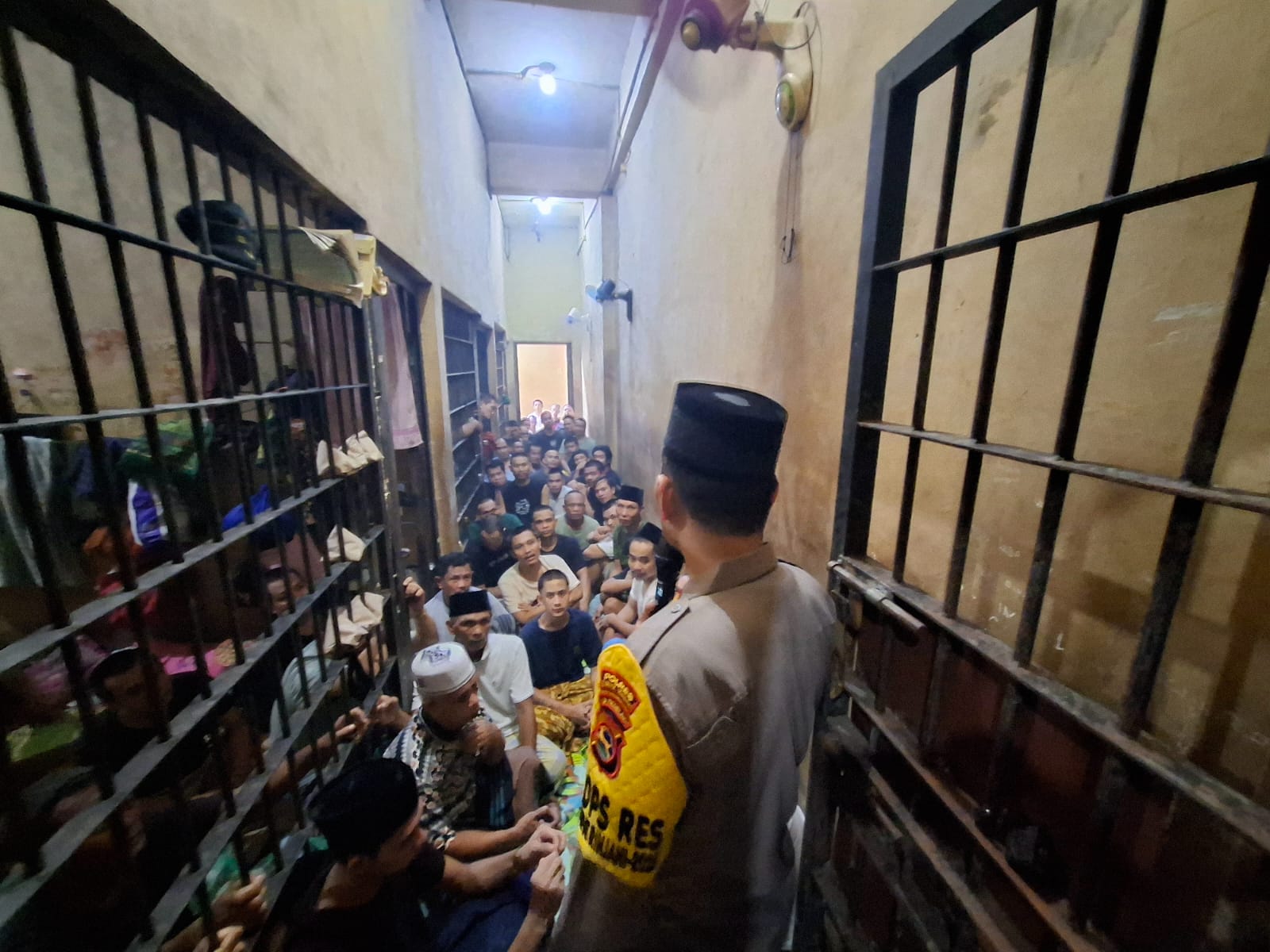 Dalam kesempatan tersebut, Kapolres membagikan makanan kepada para tahanan sebagai simbol kepedulian sambut hari lebaran.