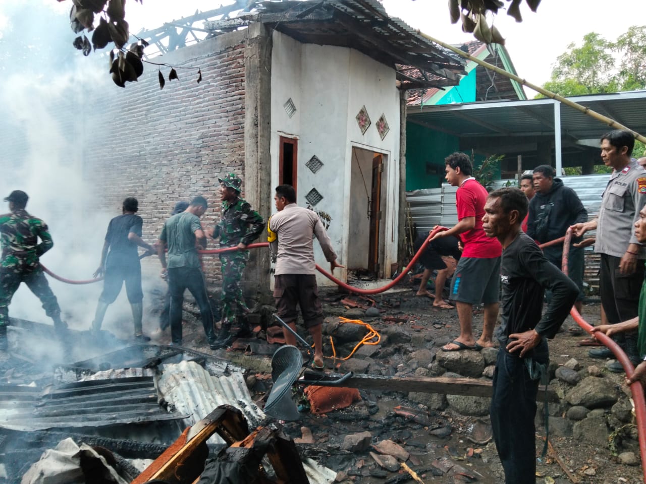 Personel Polsek Ambalawi Bantu Padamkan Kebakaran Rumah di Dusun Benteng Tolowata