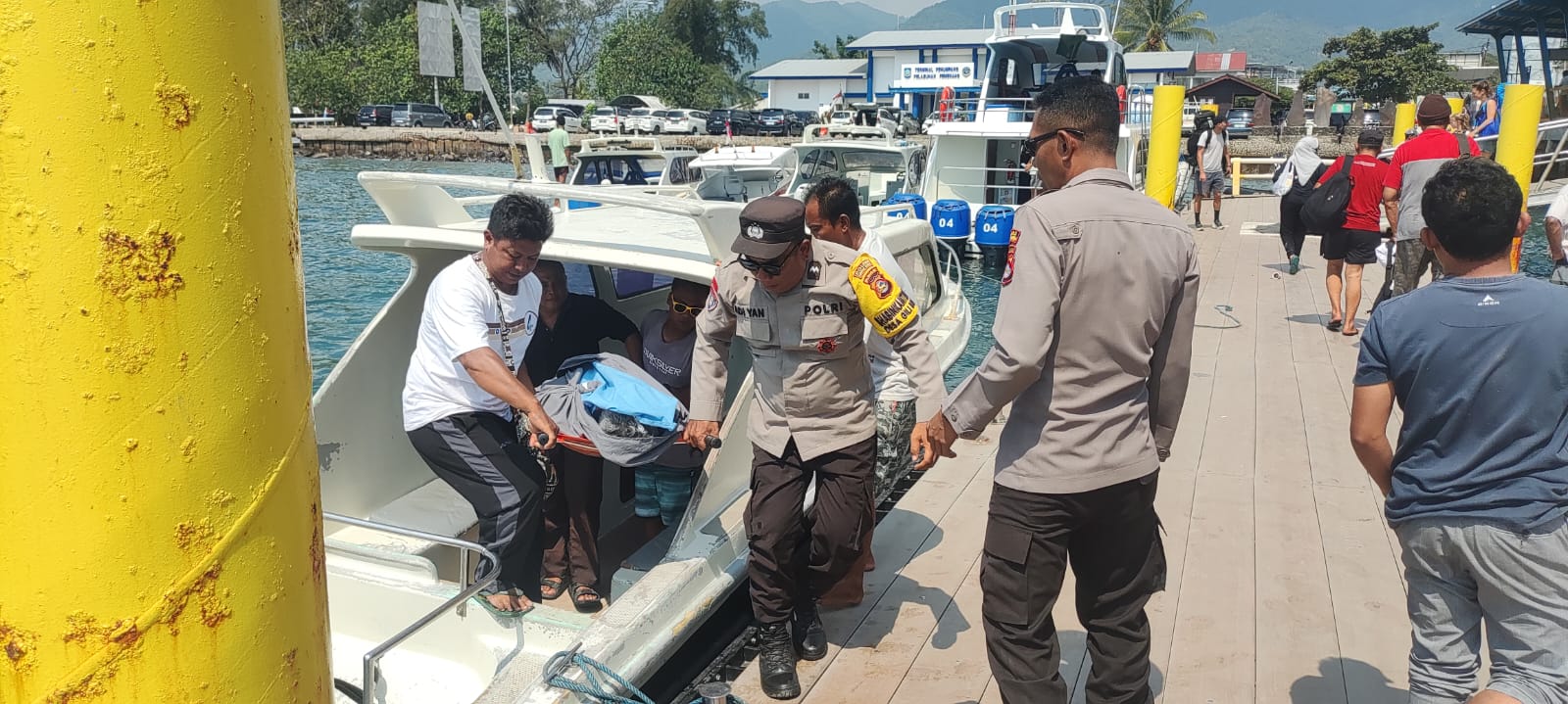 Anggota Polsek Pemenang bersama tim medis dan rekan-rekan atlet lainnya kemudian mengevakuasi jenazah korban ke Rumah Sakit Bhayangkara Mataram untuk penanganan lebih lanjut.