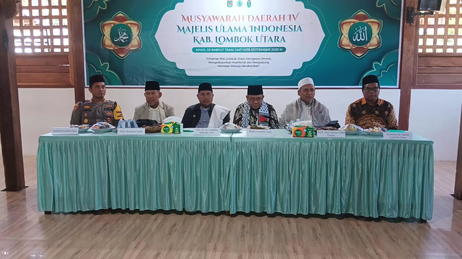Lombok Utara – Kapolres Lombok Utara, AKBP Agus Purwanta, S.I.K., menghadiri pembukaan Musyawarah Daerah (Musda) IV Majelis Ulama Indonesia (MUI) Kabupaten Lombok Utara yang digelar di Pondok Pesantren Al Istiqomah, Dusun Kapu, Desa Samaguna, Kecamatan Tanjung, Minggu (28/9/2025).