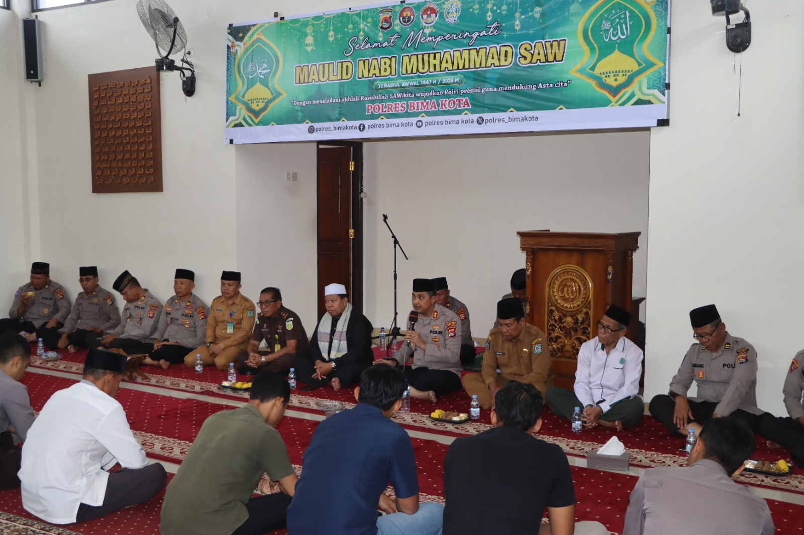 Dalam sambutannya, Kapolres Bima Kota AKBP Didik Putra Kuncoro, S.I.K., M.Si. menegaskan bahwa peringatan Maulid Nabi Muhammad SAW bukan hanya sebatas acara seremonial semata, melainkan momentum penting untuk merenungi dan meneladani akhlak mulia Rasulullah SAW.