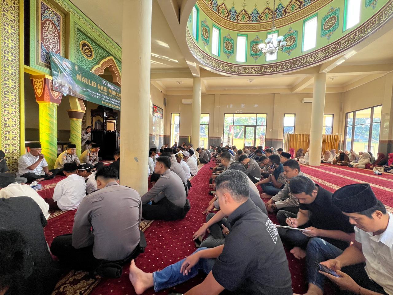 Dalam sambutannya, Kapolres Dompu AKBP Sodikin FAHROJIN Nur, S.I.K menyampaikan bahwa momentum Maulid Nabi Muhammad SAW merupakan waktu yang tepat untuk merenungkan dan meneladani akhlak mulia Rasulullah dalam menjalankan tugas dan kehidupan sehari-hari.