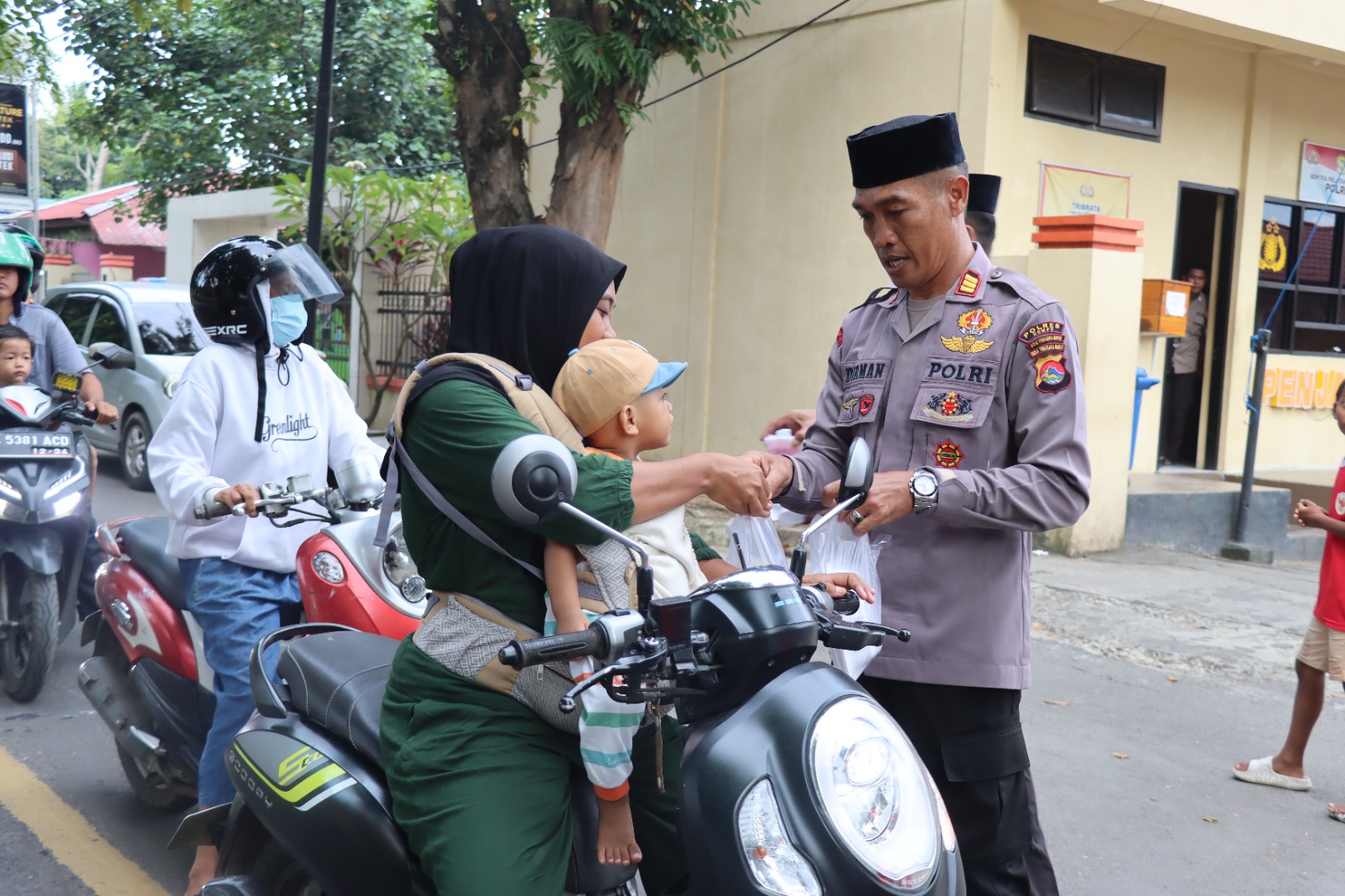 Kegiatan ini berlangsung dengan penuh ketulusan hingga pukul 17.30 WITA, dalam situasi yang aman dan kondusif. Suasana haru semakin terasa ketika para anggota kepolisian menyapa masyarakat dengan ramah, mengingatkan bahwa Ramadhan bukan hanya tentang menahan lapar dan dahaga, tetapi juga tentang menebarkan kebaikan tanpa batas.