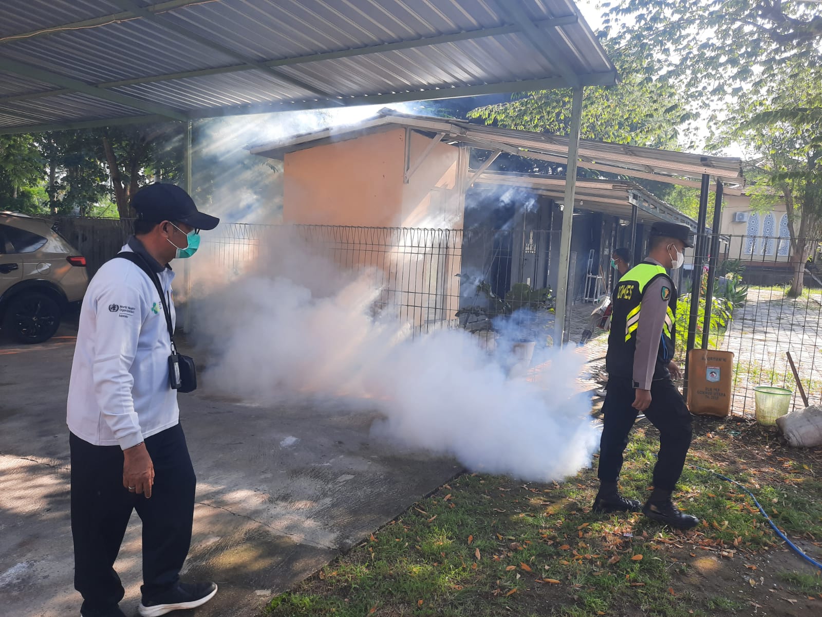 Kegiatan fogging ini langsung dilakukan oleh Tim dari tenaga kesehatan (Nakes) dari Dinas Kesehatan KLU yang di dampingi Si Dokes Polres Lombok Utara.
