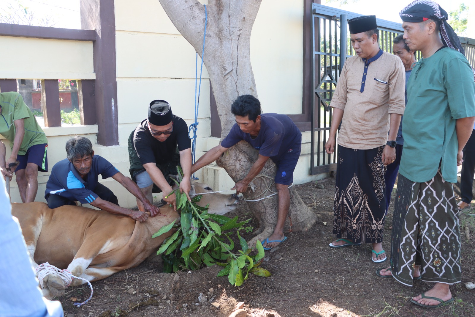 Selanjutnya, dilaksanakan prosesi penyembelihan hewan kurban sebanyak 4 ekor sapi dan 3 ekor kambing, sebagai bentuk ibadah sekaligus kepedulian sosial Polres Lombok Utara terhadap masyarakat yang membutuhkan.