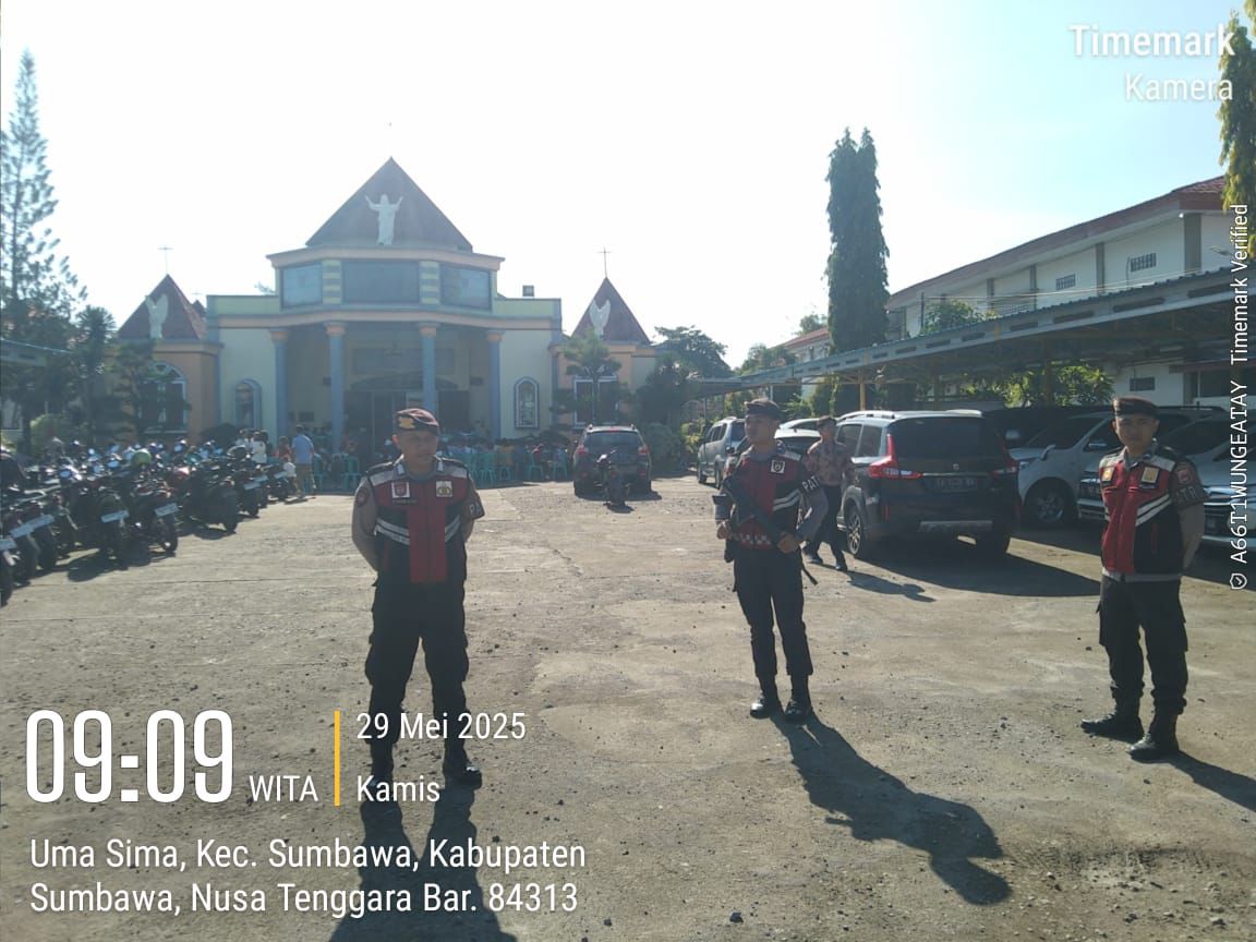 Sumbawa Besar–NTB, Kepolisian Resor Sumbawa melalui personel Satuan Samapta sukses mengamankan kegiatan ibadah Peringatan Kenaikan Isa Al Masih Tahun 2025 yang berlangsung pada Kamis (29/05/2025) mulai pukul 08.00 WITA hingga selesai. Pengamanan ini dipusatkan di Gereja Katolik Paroki Sang Penebus, Sumbawa.