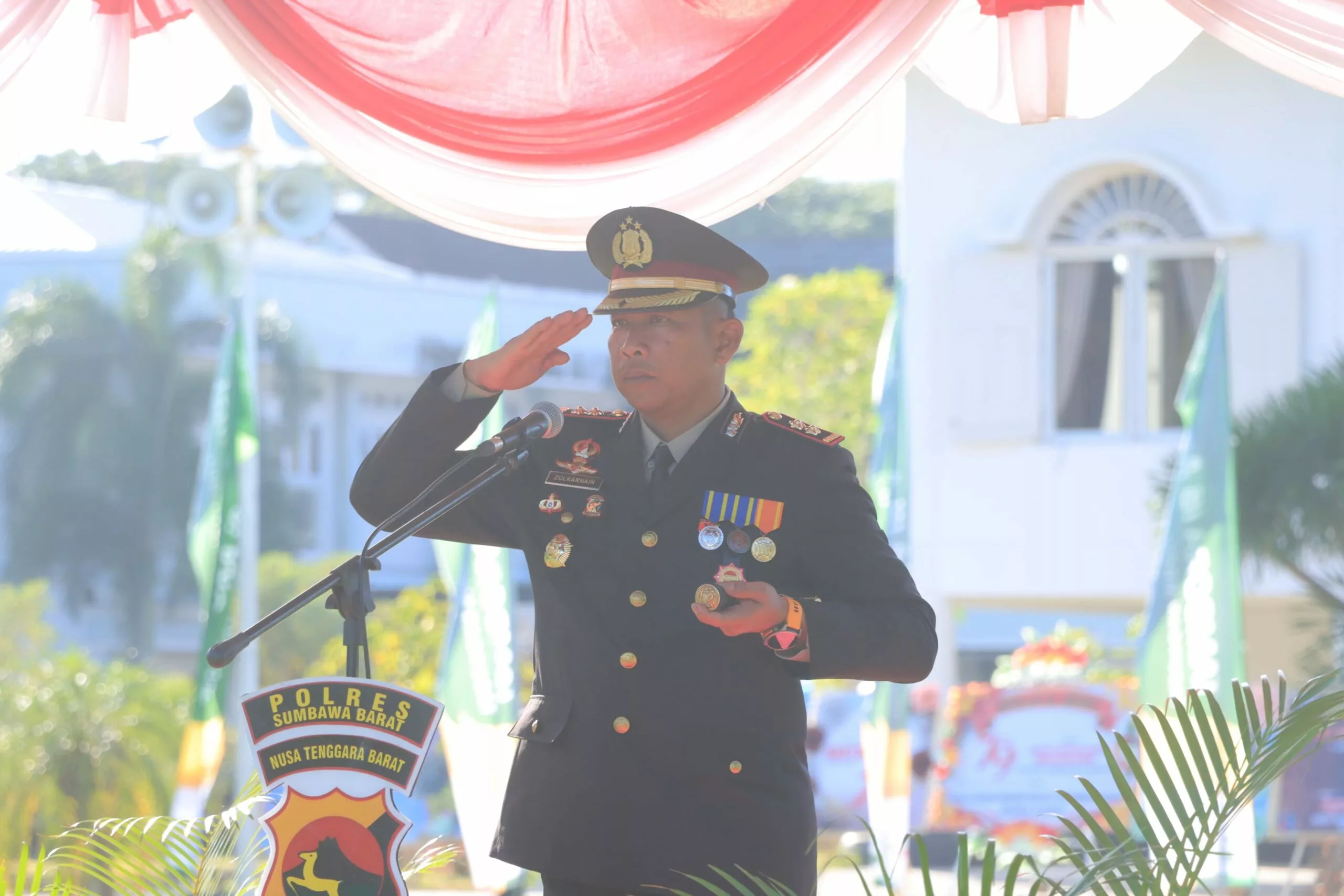 Upacara yang mengusung tema “Polri untuk Masyarakat” ini dipimpin langsung oleh Kapolres Sumbawa Barat AKBP Zulkarnain, S.I.K., selaku Inspektur Upacara. Berbagai unsur Forum Koordinasi Pimpinan Daerah (Forkopimda), tokoh masyarakat, dan elemen masyarakat lainnya turut hadir dalam kegiatan ini.