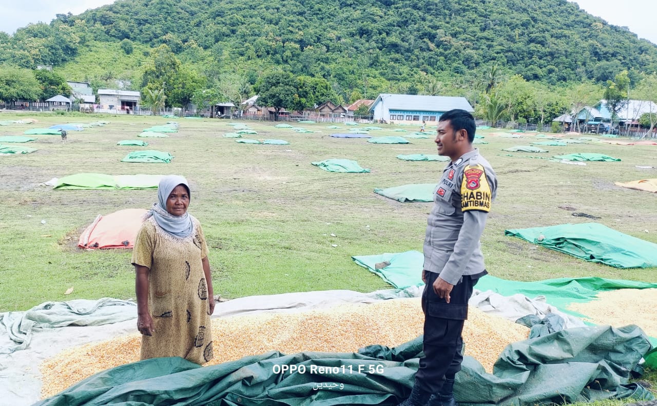 Polsek Hu’u Pantau Kegiatan Jemur Jagung Warga sebagai Dukungan Program Ketahanan Pangan Nasional
