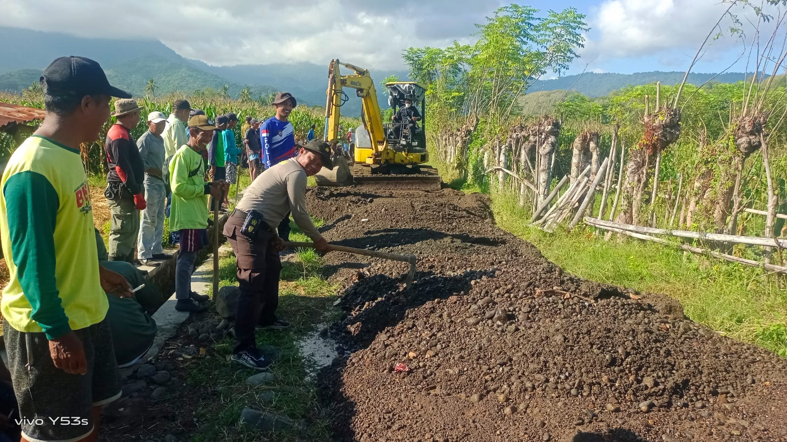 Tak hanya itu, perbaikan bangunan posyandu desa Kalebeso juga menjadi bagian dari fokus kegiatan, memastikan fasilitas kesehatan dasar dapat berfungsi optimal. Proyek infrastruktur penting lainnya adalah penggalian pondasi jembatan Timpas, yang akan menjadi penghubung vital antara Desa Kalebeso menuju Desa Labuhan Burung, memperlancar aksesibilitas warga. Serta, tim gabungan juga turut aktif dalam pembersihan area dan perataan material di jalur usaha tani (JUT) menggunakan alat manual seperti cangkul dan sekop, demi memastikan lahan pertanian dapat diakses dengan baik.