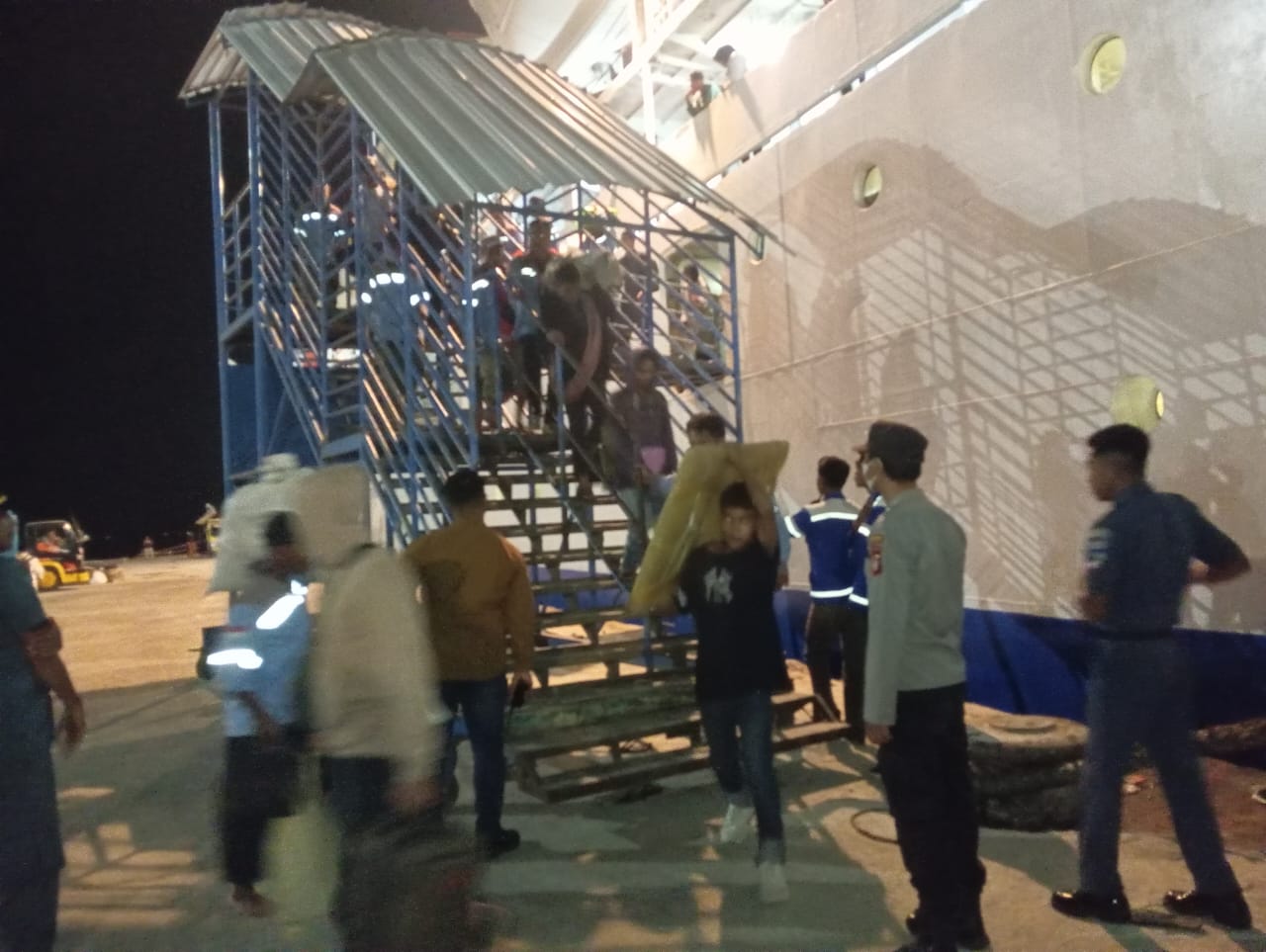Bima Kota, NTB (18 Juli 2025) – Polsek Kawasan Pelabuhan Laut Bima melaksanakan pengamanan terhadap aktivitas embarkasi dan debarkasi penumpang Kapal Motor (KM) LEUSER di Areal Pelabuhan Bima, Jalan R.E. Marthadinata, Kelurahan Tanjung, Kecamatan Rasanae Barat, Kota Bima, pada Kamis malam, 17 Juli 2025, sekitar pukul 23.10 WITA.