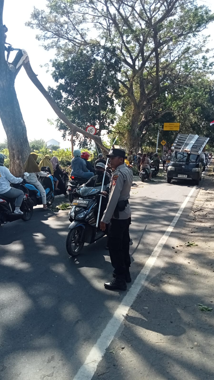 Kegiatan ini dipimpin oleh Ps. Kanit Samapta Polsek Pemenang bersama Kanit Lantas serta Bhabinkamtibmas Desa Pemenang Barat. Selain melakukan pengamanan, personel Polsek Pemenang turut bergotong royong bersama warga dalam penebangan pohon yang dinilai berpotensi membahayakan pengguna jalan.