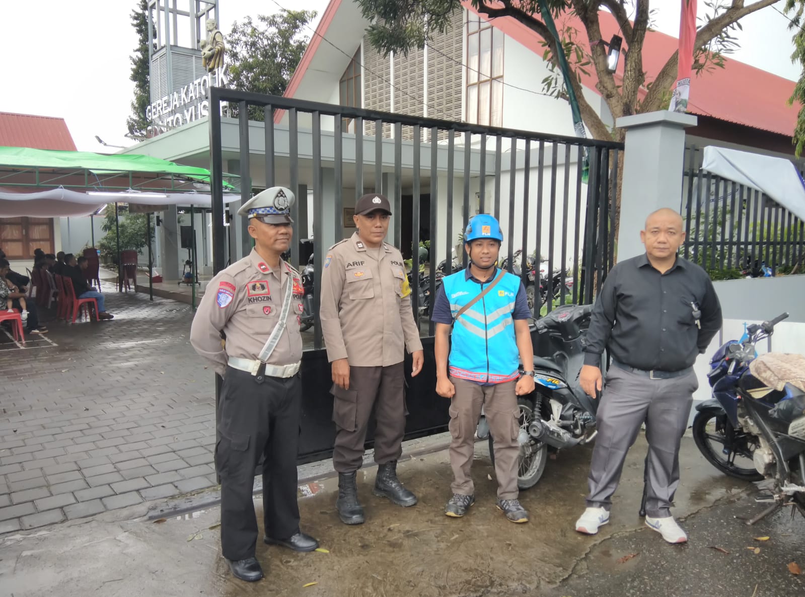 Kota Bima, NTB (19 April 2025) – Dalam rangka menjaga situasi kamtibmas tetap kondusif, Polsek Rasanae Timur Polres Bima Kota melaksanakan pengamanan kegiatan Ibadah Jum’at Agung Wafat Isa-Almasih Tahun 2025 yang berlangsung di Gereja Katolik Santo Yusuf, Kelurahan Rabangodu Selatan, Kecamatan Raba, Kota Bima.