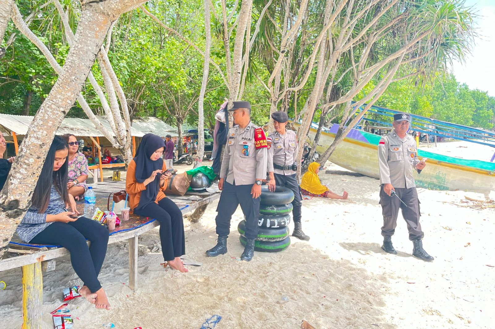 Para personel bergerak secara mobile, menyisir seluruh area obyek wisata pantai guna memastikan keamanan dan memberikan rasa nyaman kepada para pengunjung.