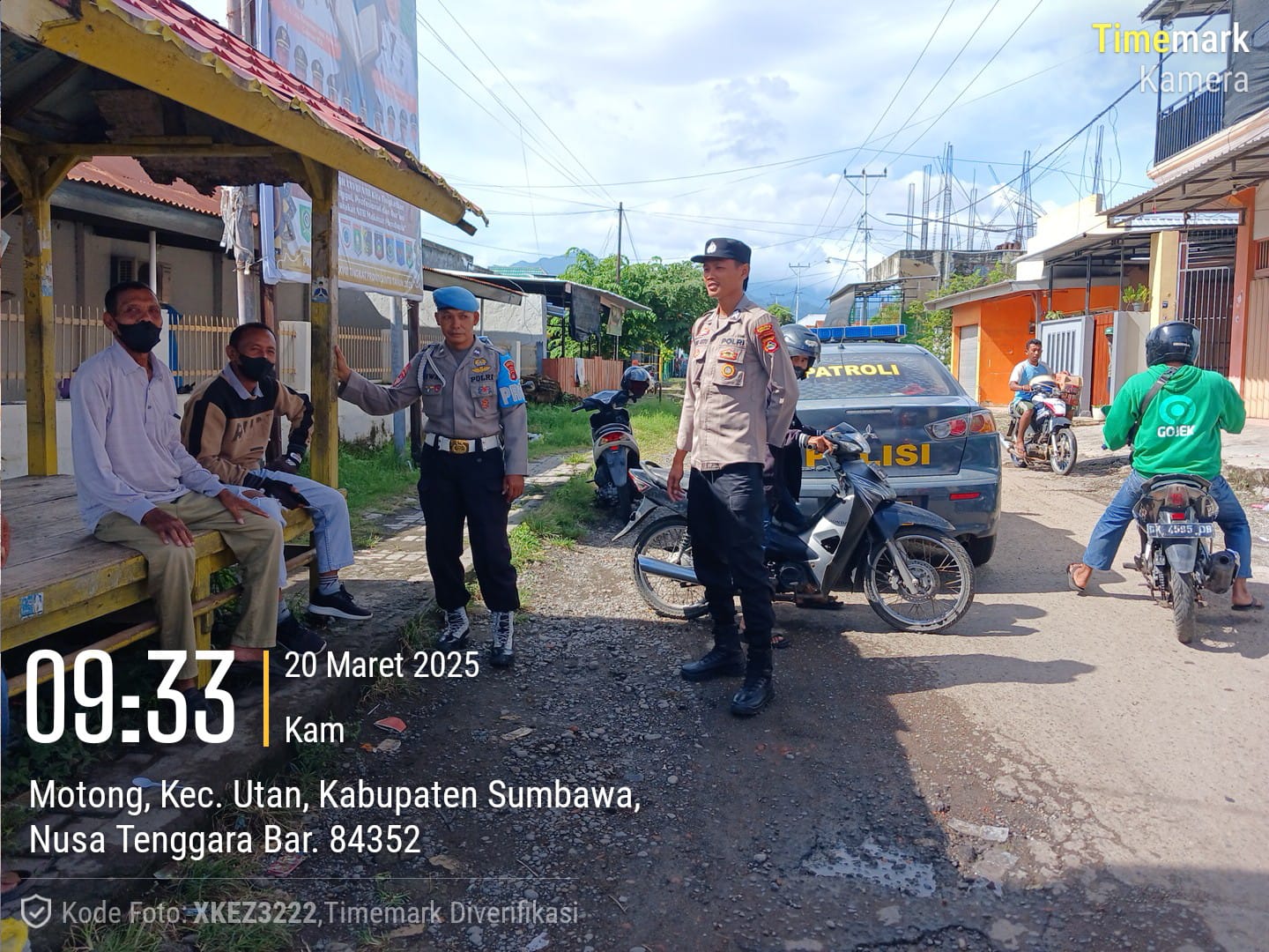 Sumbawa Besar–NTB, Personel Polsek Utan jajaran Polres Sumbawa melaksanakan kegiatan patroli sekaligus memberikan sosialisasi serta himbauan kepada masyarakat terkait penolakan aksi premanisme yang mengatasnamakan organisasi kemasyarakatan (ormas), Kamis (20/03/25) pagi.