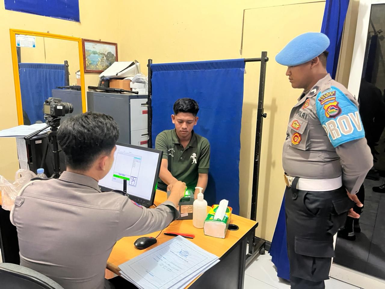 Petugas terlihat memastikan proses perekaman identitas dan biometrik pemohon SIM berjalan sesuai ketentuan, serta memeriksa kesesuaian perilaku dan standar kerja anggota yang melayani. Propam juga memberikan imbauan serta penguatan disiplin apabila ditemukan hal-hal yang perlu diperbaiki.