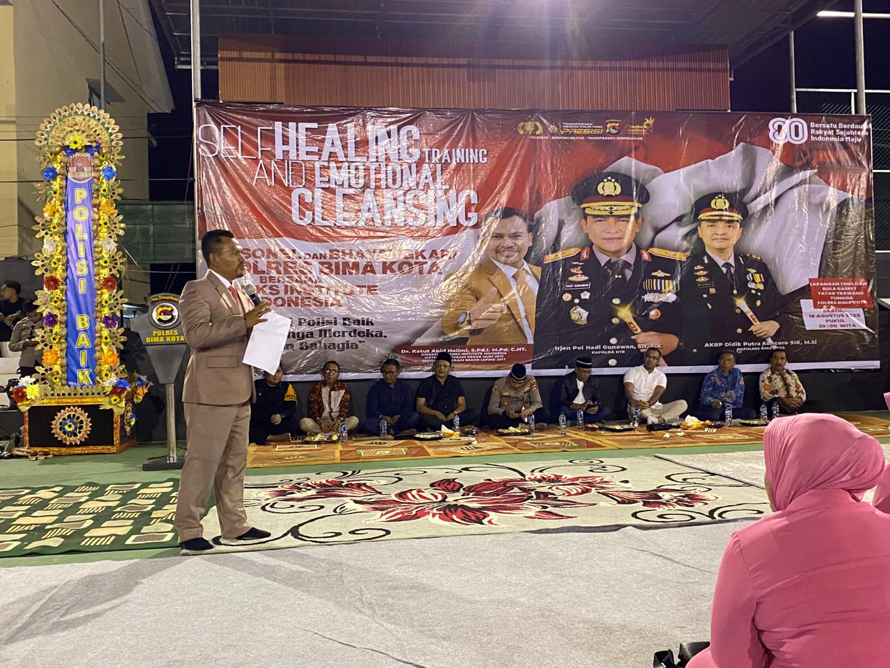 Kota Bima, NTB (17 Agustus 2025) – Ada suasana berbeda di Polres Bima Kota pada momen malam peringatan Hari Ulang Tahun (HUT) ke-80 Kemerdekaan Republik Indonesia. Ratusan personel Polres Bima Kota bersama Bhayangkari larut dalam keharuan hingga meneteskan air mata saat mengikuti kegiatan Self Healing Training and Emotional Cleansing yang digelar di Lapangan Olahraga Tatag Trawang Tungga, Sabtu (16/8/2025) malam.