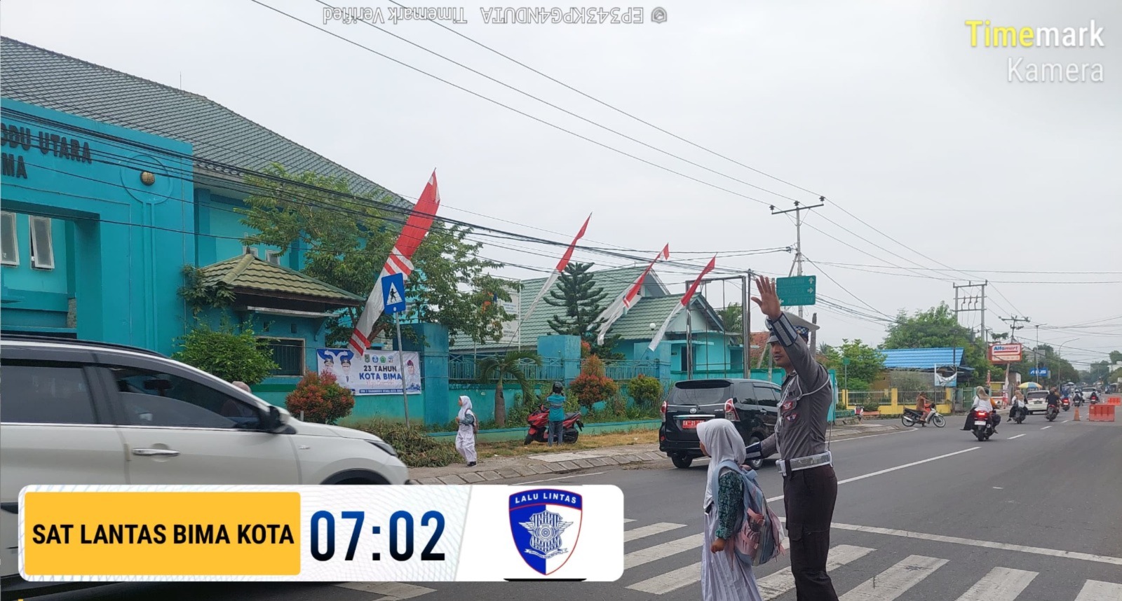 “Personel Sat Lantas melaksanakan pengaturan lalu lintas, membantu menyeberangkan anak-anak sekolah dan pejalan kaki, serta memberikan teguran simpatik kepada pengendara yang melakukan pelanggaran kasat mata seperti tidak menggunakan helm, melawan arus, dan berboncengan tiga,” jelas IPTU Bambang Tedy.