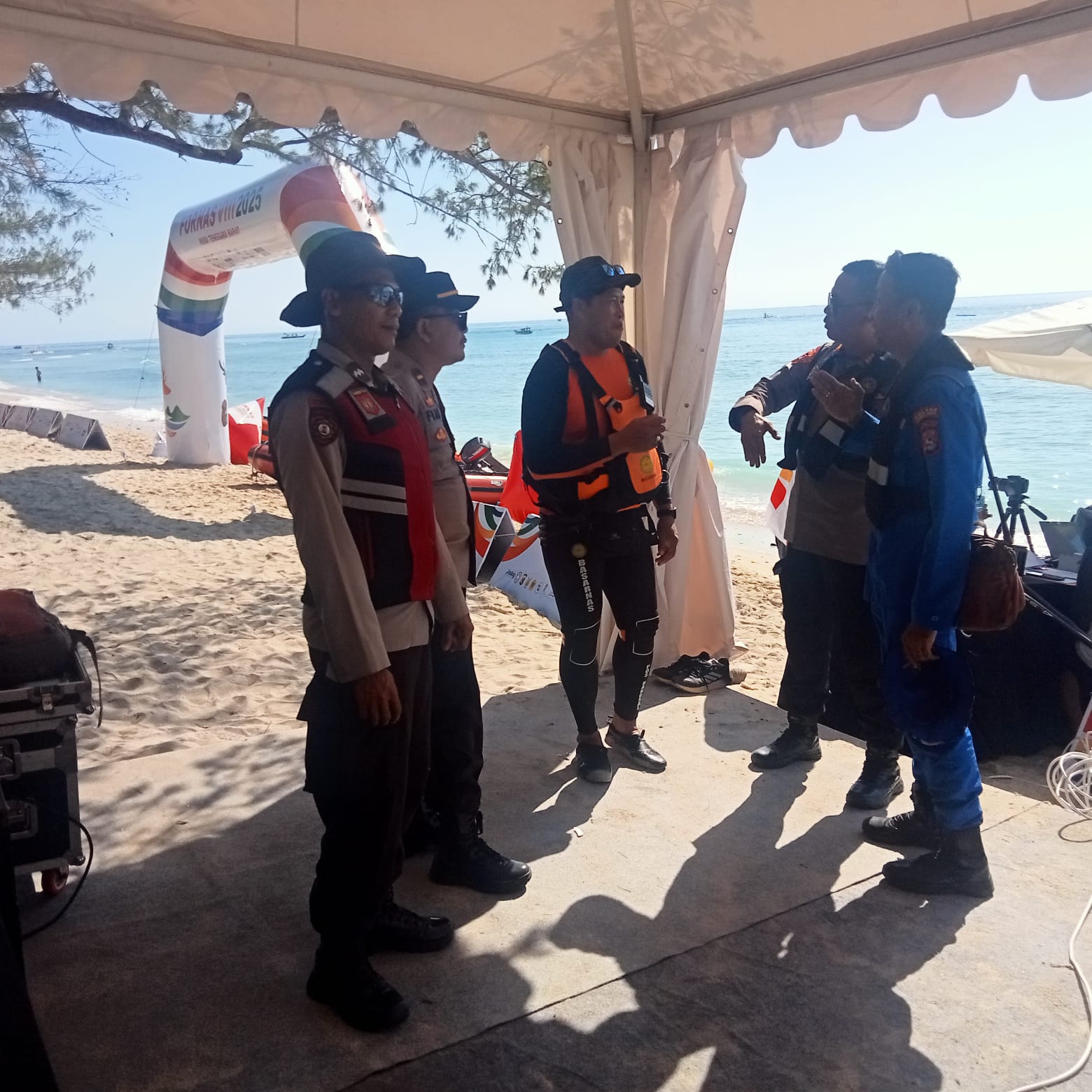 Kegiatan pengamanan dilakukan di seputaran Pantai Gili Trawangan yang menjadi lokasi lomba mancing dan stand-up paddle boarding yang diikuti oleh para atlet FORNAS di seluruh Indonesia