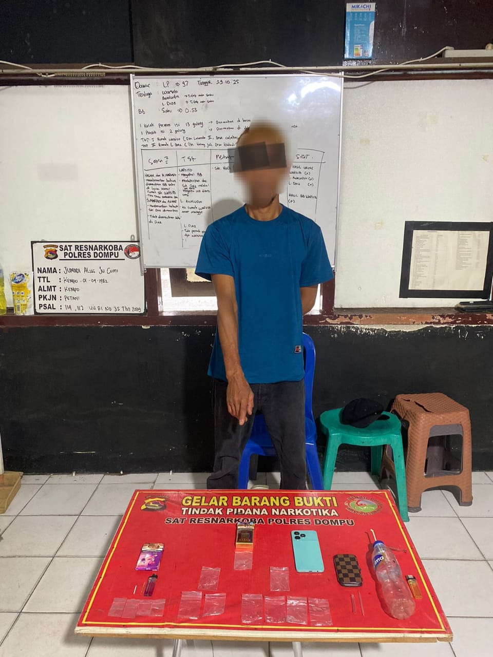 Satuan Reserse Narkoba (Satresnarkoba) Polres Dompu kembali mencatat prestasi dengan menggagalkan peredaran narkotika jenis sabu di wilayah hukumnya. Seorang pria berinisial S (41) warga Kelurahan Montabaru, Kecamatan Woja, Kabupaten Dompu, diringkus petugas di sebuah rumah yang beralamat di Dusun Selaparang, Desa Matua, Kecamatan Woja, pada Minggu (9/11/2025) sekitar pukul 16.00 Wita.
