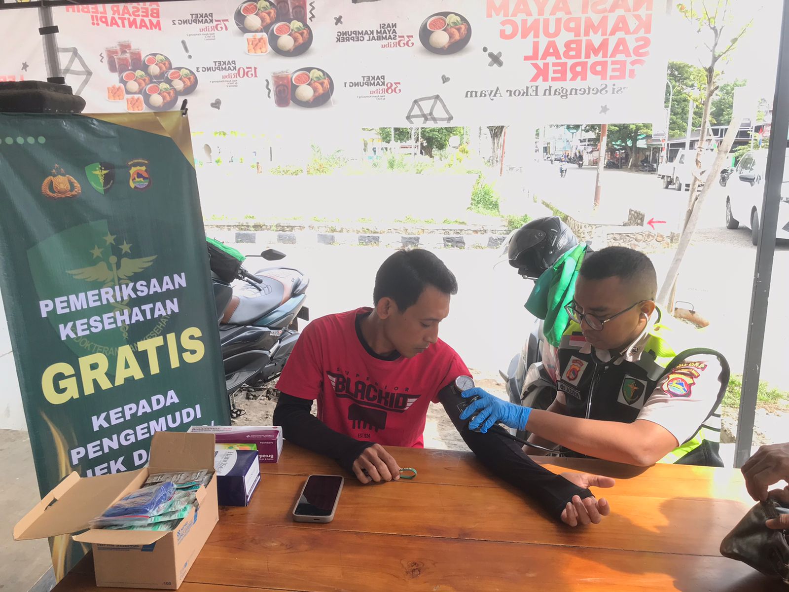 Si Dokkes Polres Bima Kota Gelar Pemeriksaan Kesehatan Gratis dan Bagikan Vitamin untuk Pengemudi Ojek Online