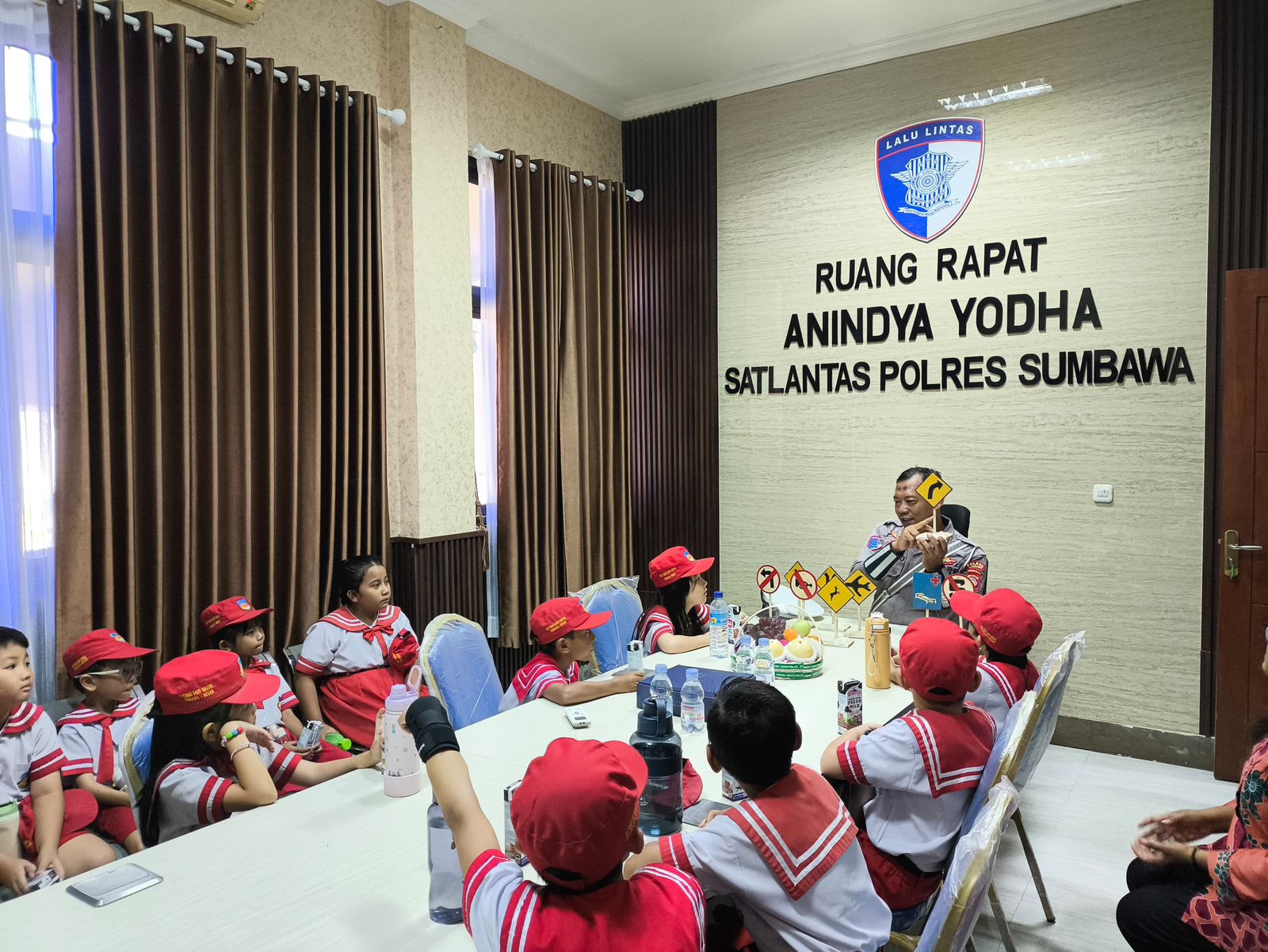Selama kunjungan, para siswa mendapatkan edukasi interaktif mengenai pentingnya keselamatan berkendara. Mereka diajarkan tentang rambu-rambu lalu lintas, cara menyeberang jalan yang aman, serta pentingnya menggunakan helm saat naik sepeda motor. Petugas juga memperkenalkan berbagai kegiatan dan fungsi yang ada di Polres Sumbawa, mulai dari ruang pelayanan hingga unit patroli.