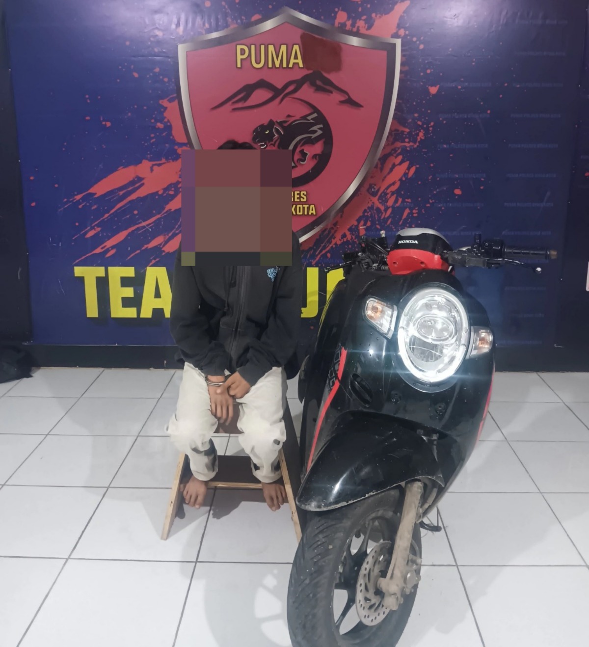 Terduga pelaku berinisial AW, seorang pelajar asal Kecamatan Monta, ditangkap di rumahnya saat sedang tertidur. Ia diduga kuat terlibat dalam aksi pencurian satu unit sepeda motor milik Rini Ariani (39), warga Kelurahan Santi, Kecamatan Mpunda, Kota Bima.